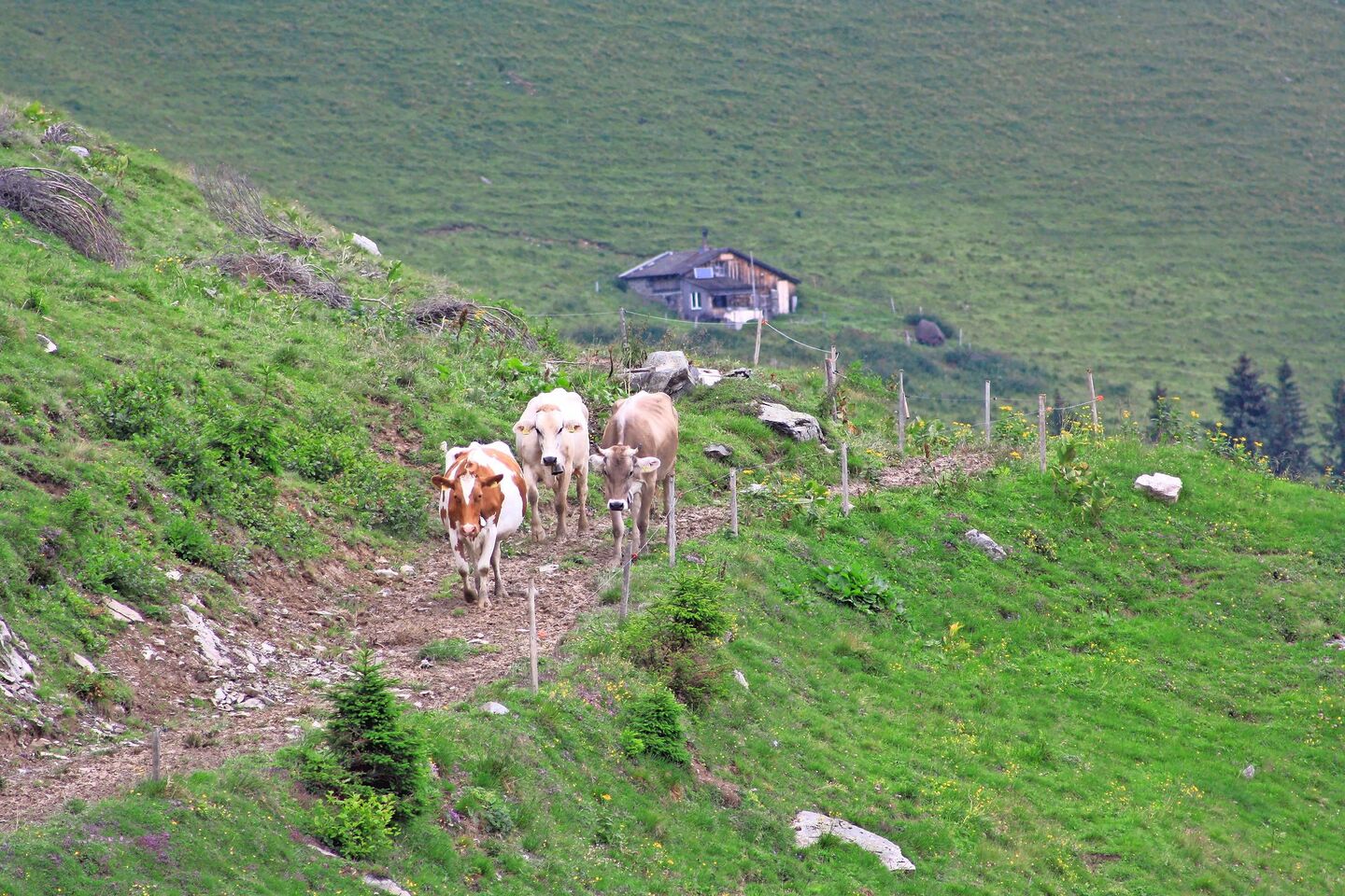 Kaum waren die Tiere oben, schlug das Wetter Mitte Juni um. Kälte und Nässe forderten das Alppersonal. Vielerorts standen die Tiere im Dreck, teilweise wurde man von Schnee überrascht. Wo man konnte, wurde zugefüttert. Das Graswachstum erlitt einen starken Dämpfer, das schlechte Wetter schlug dem Personal auf die Motivation.