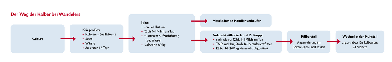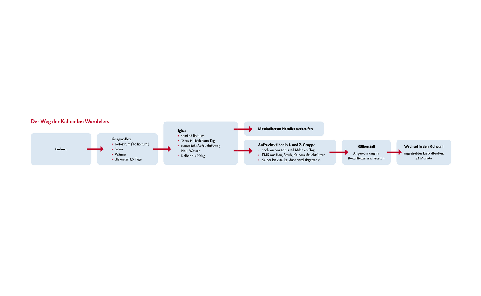 Wandeler setzte dies um, indem er von drei auf zwei Mal Tränken am Tag umstellte. Gleichzeitig wurde jedoch die Milchmenge hochgefahren. So erhalten die Kälber neu morgens und abends je sechs bis sieben Liter Milch, im Milchtaxi aufgewärmt auf rund 42 Grad.