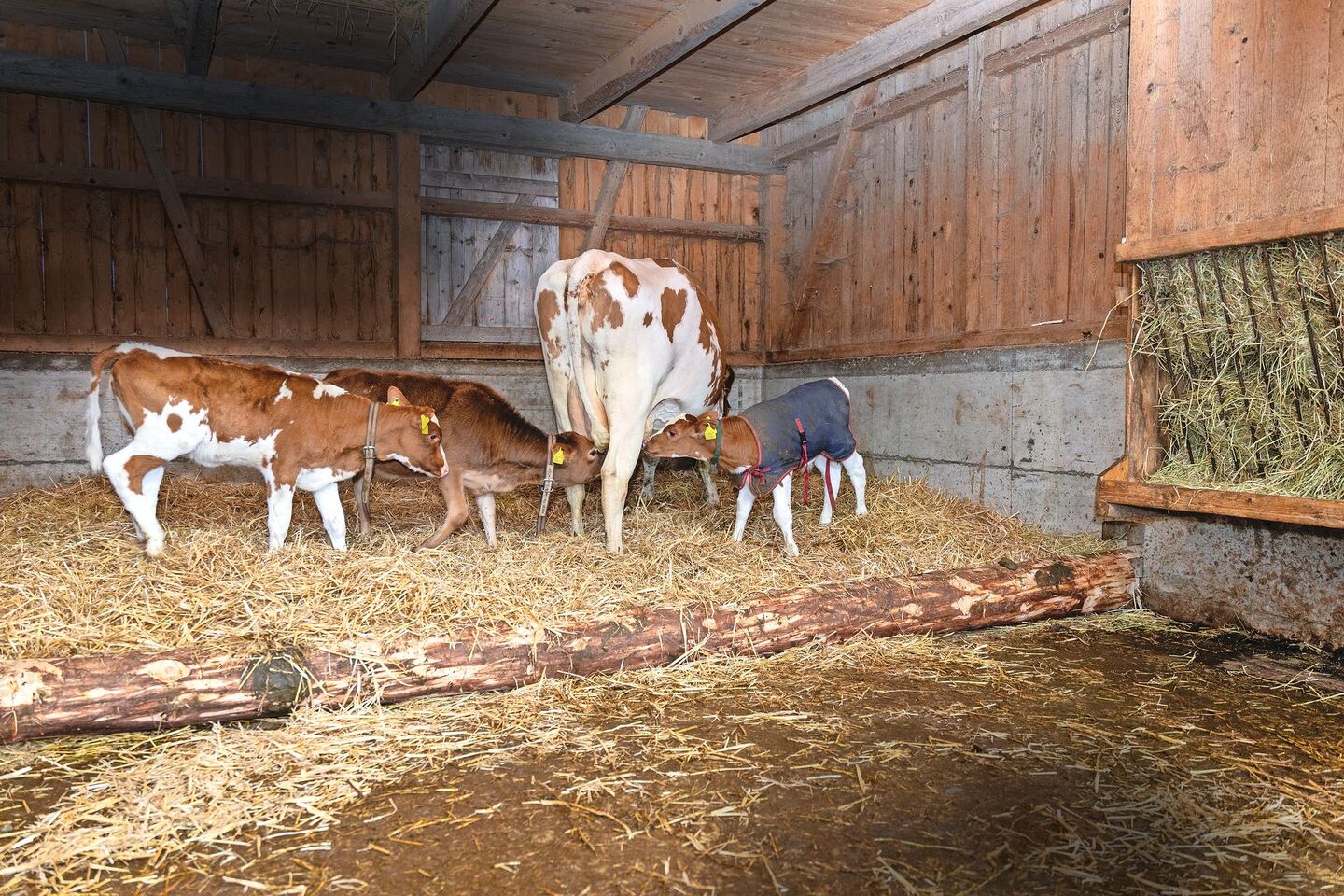 Die Aufzuchtkälber werden im Alter von sechs Monaten auf dem Betrieb abgetränkt und anschliessend extern auf einem umliegenden Betrieb aufgezogen. Jährlich werden vier bis fünf Mastremonten auf dem Betrieb abgetränkt und anschliessend mit ca. 200 kg zur Ausmast verkauft.
