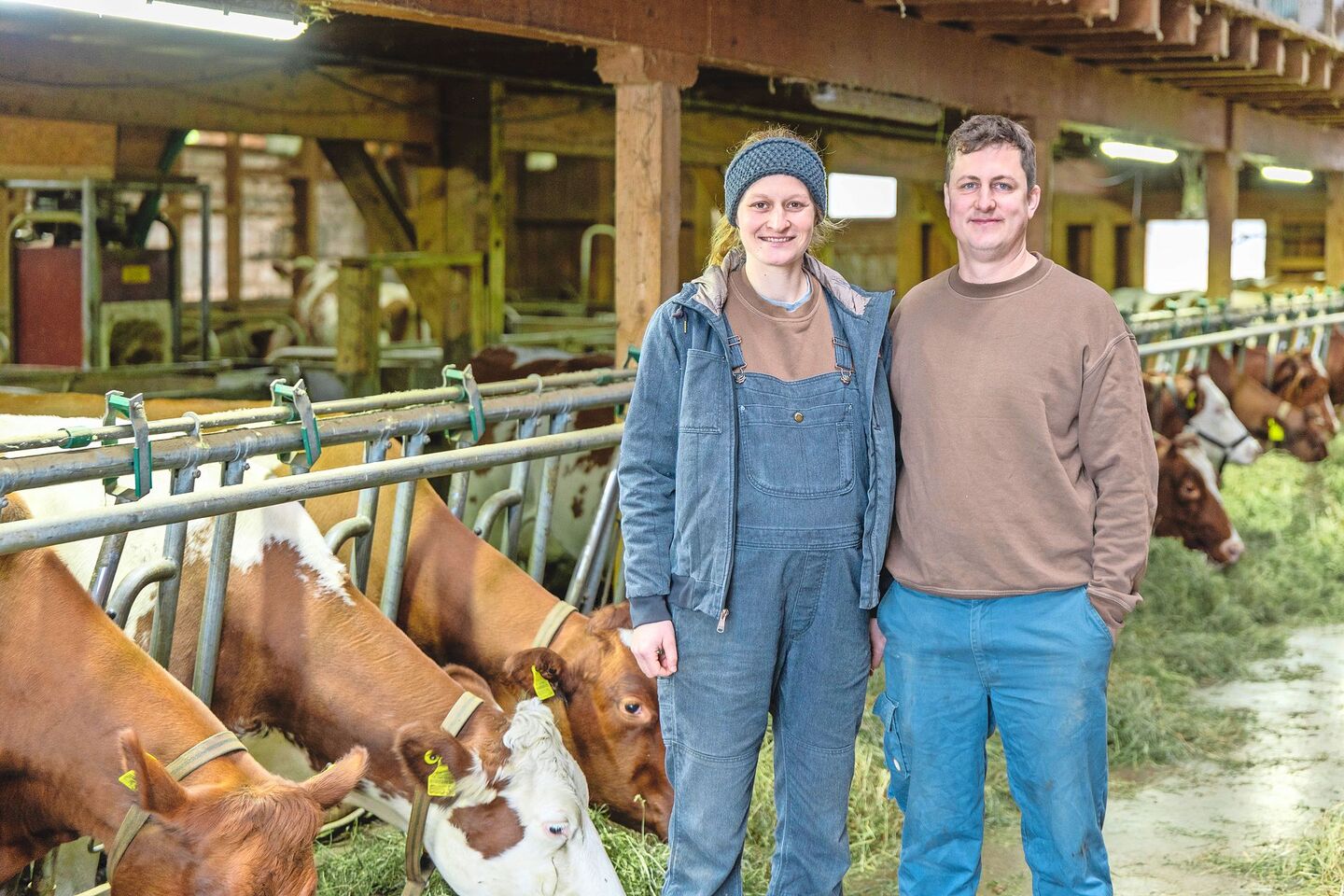 Die durchschnittliche Laktationsleistung liegt bei gut 7000 kg Milch pro Kuh. Vor der Umstellung zum biologischen Anbau im Jahr 2013 wurden auf dem Betrieb Milchkühe der Rasse Red Holstein gehalten, seither wurde dann Schweizer Fleckvieh eingekreuzt.