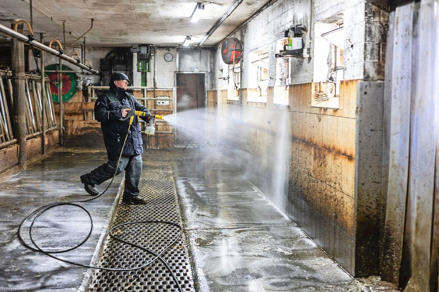 - Martin Abderhalden hat in seinem Stall einen elektrisch betriebenen Hochdruckreiniger fix installiert.