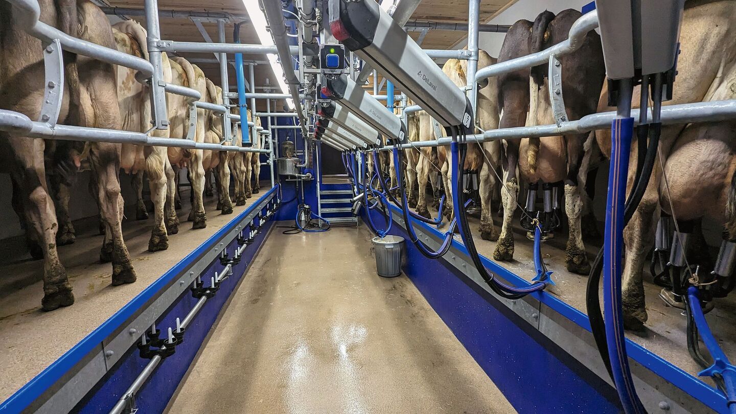 Bei Bühlmanns wird zwar mehr Arbeitszeit in die Fütterung investiert. Mit dem neuen 8er-Swing-over-Melkstand von De Laval konnte der Betriebsleiter dafür beim Melken Zeit einsparen: «In einer Dreiviertelstunde habe ich allein die Herde gemolken», so Bühlmann. Er sei mit der Wirtschaftlichkeit der Milchproduktion auf seinem Hof sehr zufrieden.