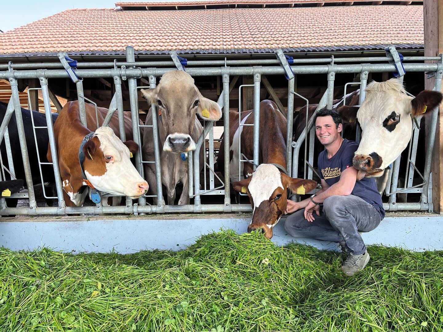 Dominik Bühlmann bewirtschaftet den Betrieb in Maschwanden ZH biologisch. Als Knospe-Betrieb hält er sich unter anderem an die Fütterungsrichtlinien nach Bio Suisse, die am 1. Januar 2022 wie folgt angepasst wurden: Knospe-Tiere fressen zu 100 Prozent Schweizer Biofutter. Ausserdem wurde das Kraftfutter in der Ration von 10 auf 5 Prozent gesenkt.