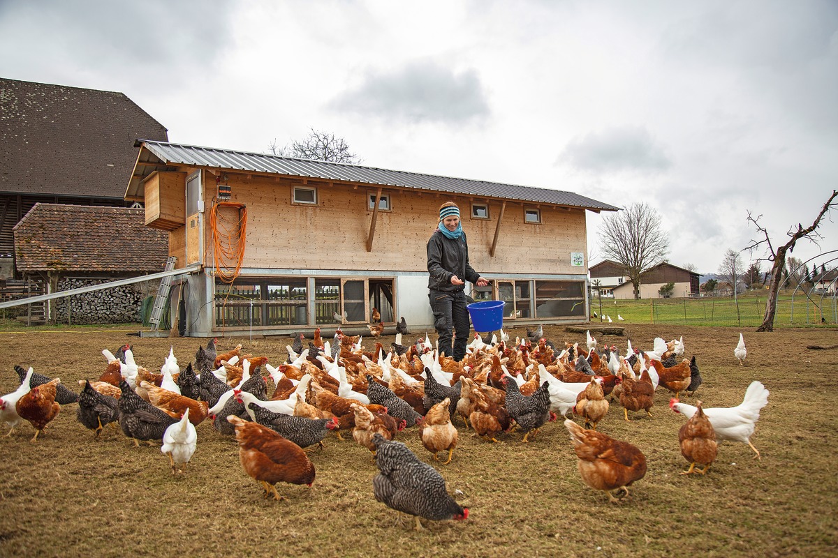 Sie betont aber: die Arbeiten müsse man nicht alle selbst erledigen. Wichtig sei, dass jemand die Verantwortung übernehme. «Diese Person sollte zwei Mal pro Tag im Stall sein, um nach den Hühnern und dem Futter zu schauen. Diese Person sollte mit Handelspartnern und Kunden verhandeln und sich weiterbilden», sagt Portmann. Eier einpacken müsse man nicht selbst, aber die Leute gut einarbeiten und auch die Qualität kontrollieren sei sehr wichtig. «Ich packe die Eier manchmal mit meinen Kindern ein, die machen das gerne», lacht Portmann.