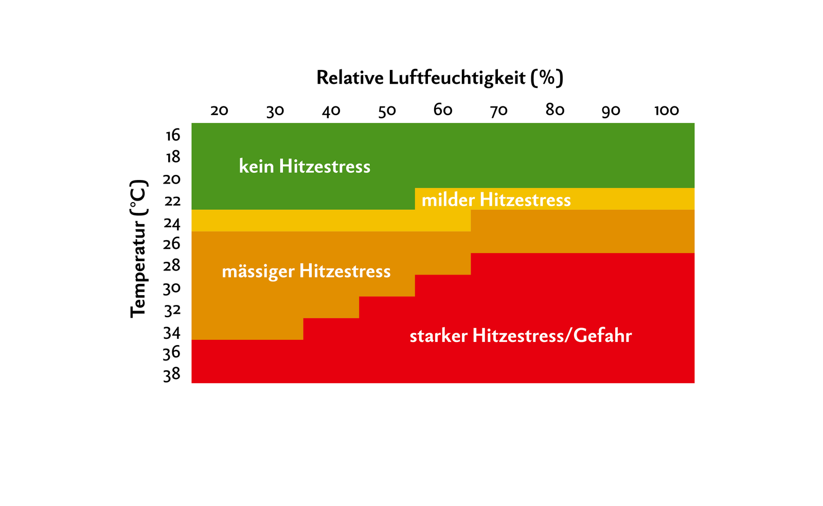 Konstant hohe Temperaturen kombiniert mit einer hohen Luftfeuchtigkeit begünstigen Hitzestress. Länger andauernder Hitzestress kann bei Nutztieren gravierende Folgen auf die Gesundheit und die Leistung haben. Im schlimmsten Fall kann Hitzestress zum Tod führen, weswegen es gilt, an heissen Tagen ein besonderes Augenmerk auf seine Tiere zu legen.