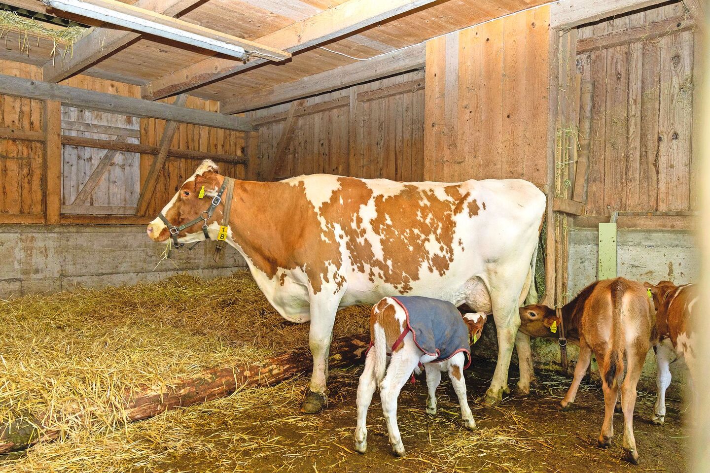 Muttergebundene Kälberaufzucht: Bei muttergebundenen Systemen kann das Kalb normalerweise bis zum Absetzen bei der eigenen Mutter saugen. Zudem wird die Kuh in der Regel gemolken. Dies kann entweder ein- bis zweimal am Tag oder mit dem Melkroboter sowie erst nach dem Absetzen der Kälber erfolgen.