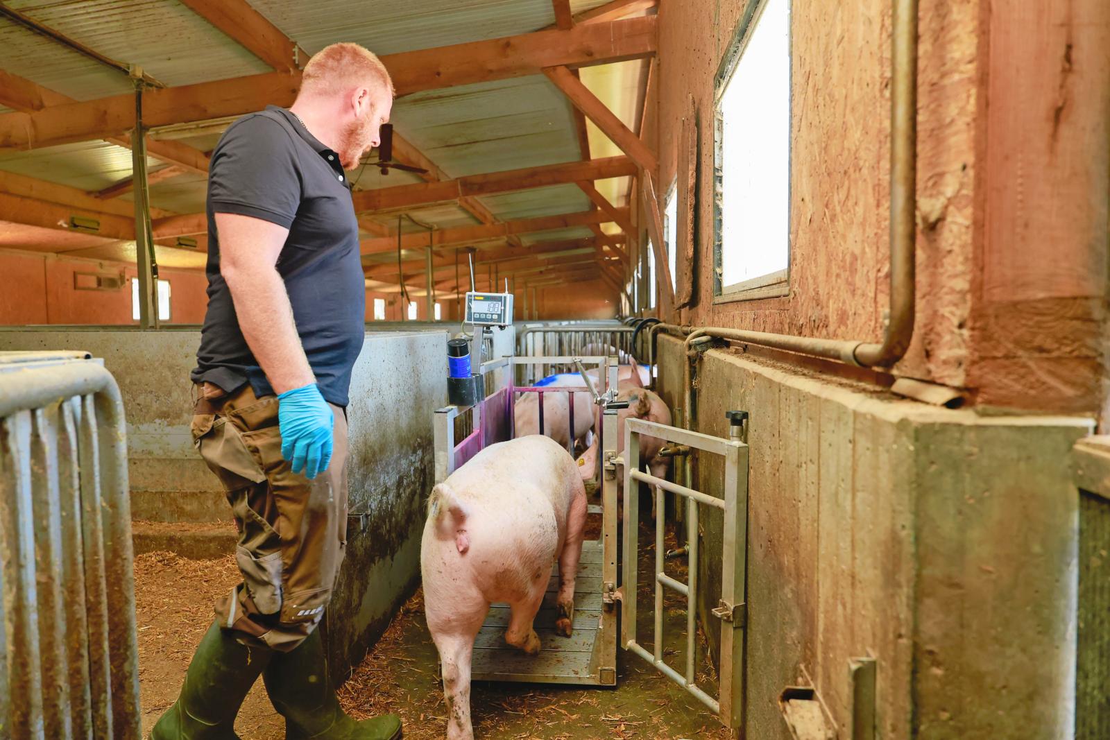 - Durch das Wiegen seiner Mastschweine kann Landwirt Silvan Vogel zu schwere und zu leichte Schweine vermeiden und einen besseren Schlachterlös erzielen.