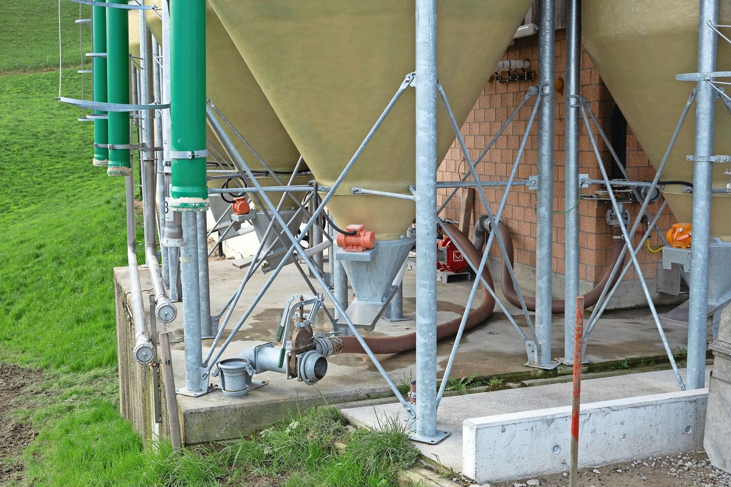 - Silos, Futterlager, Mistplatte und Verladerampe ebenfalls umzäunt.