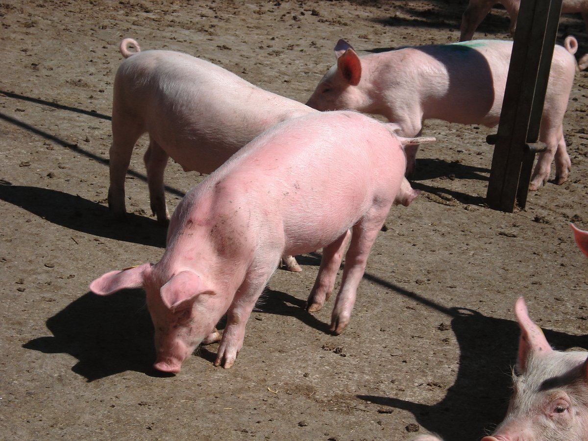 Schweine liegen im Sommer oft lieber draussen auf dem kühlenden Beton als im stickigen Liegebereich. Nebst Abkühlungsmöglichkeiten braucht es deshalb auch einen Schattenplatz, sonst bekommen die Schweine einen Sonnenbrand.