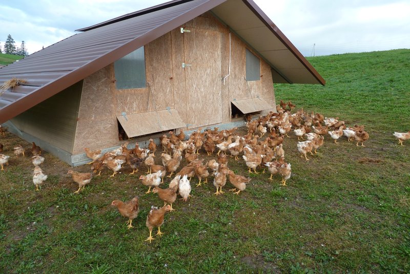 Erika Bigler: Grössere Geflügelställe verfügen über eine mechanische Lüftung und einen Stallcomputer, womit das Stallklima gesteuert und die Stallluft intensiv ausgetauscht werden kann. Diese Ställe sind gut isoliert, wodurch sie sich weniger schnell aufwärmen. Heute werden auch häufig Vernebelungsanlagen zur Kühlung fix eingebaut. In mobilen und kleineren Hühnerställen wird die Stallluft häufig nur über Lüftungsschlitze und Lüftungsöffnungen erneuert. Dies, und die eher schlechtere Gebäudeisolation, führt bei sommerlichem Wetter zu eher heisseren Temperaturen im Stall.