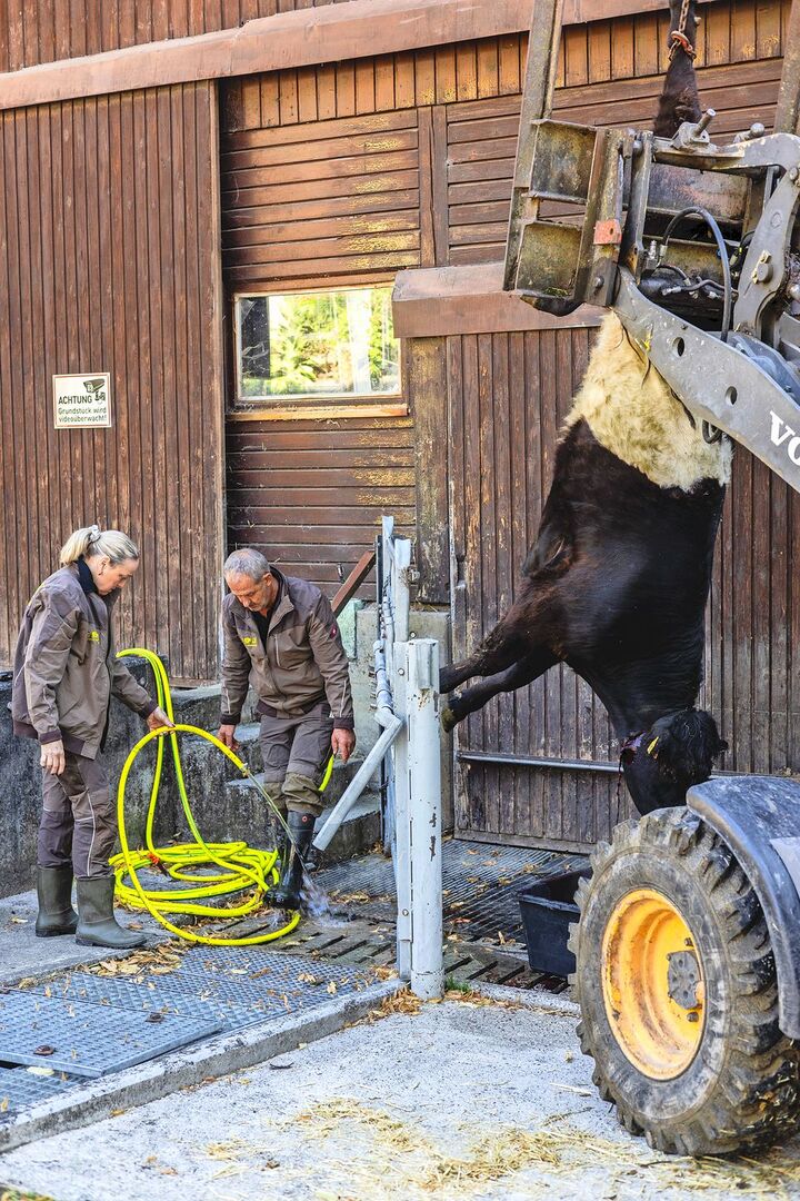 Die Bewilligung für die Durchführung der Hoftötung, bei der mittels Bolzenschuss betäubt wird, kam dann 2019. Technisch sei diese einfacher umzusetzen, da die Tiere dabei in einem Stand fixiert werden. Auch muss der Amtsveterinär nicht bei jeder Tötung anwesend sein. Man brauche allerdings ein spezielles Fixationsgitter, welches die einfache Entnahme des betäubten Tieres ermöglicht, so Müller.
