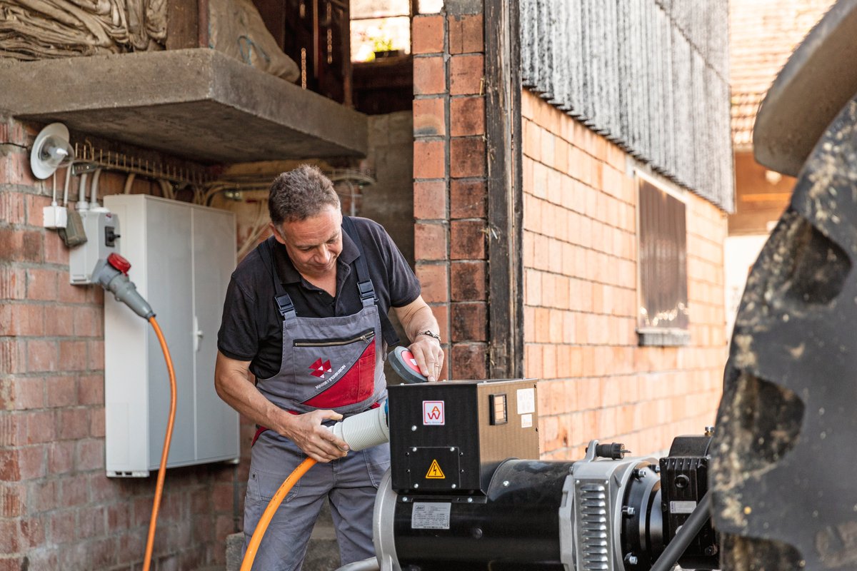 Mit einem neuen Notstromaggregat wurde sowohl das Wohnhaus als auch den Stall mit Strom versorgt. Deshalb wurde die Stromzufuhr an einem Punkt zusammengefasst.