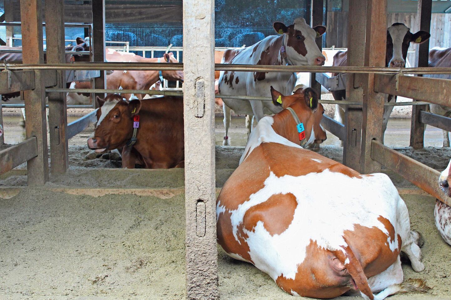 Tierbestand: 54 Milchkühe (SF, RH), Mastkälber (40 bis 45 pro Jahr), 7 Pferde, 1 Pony
