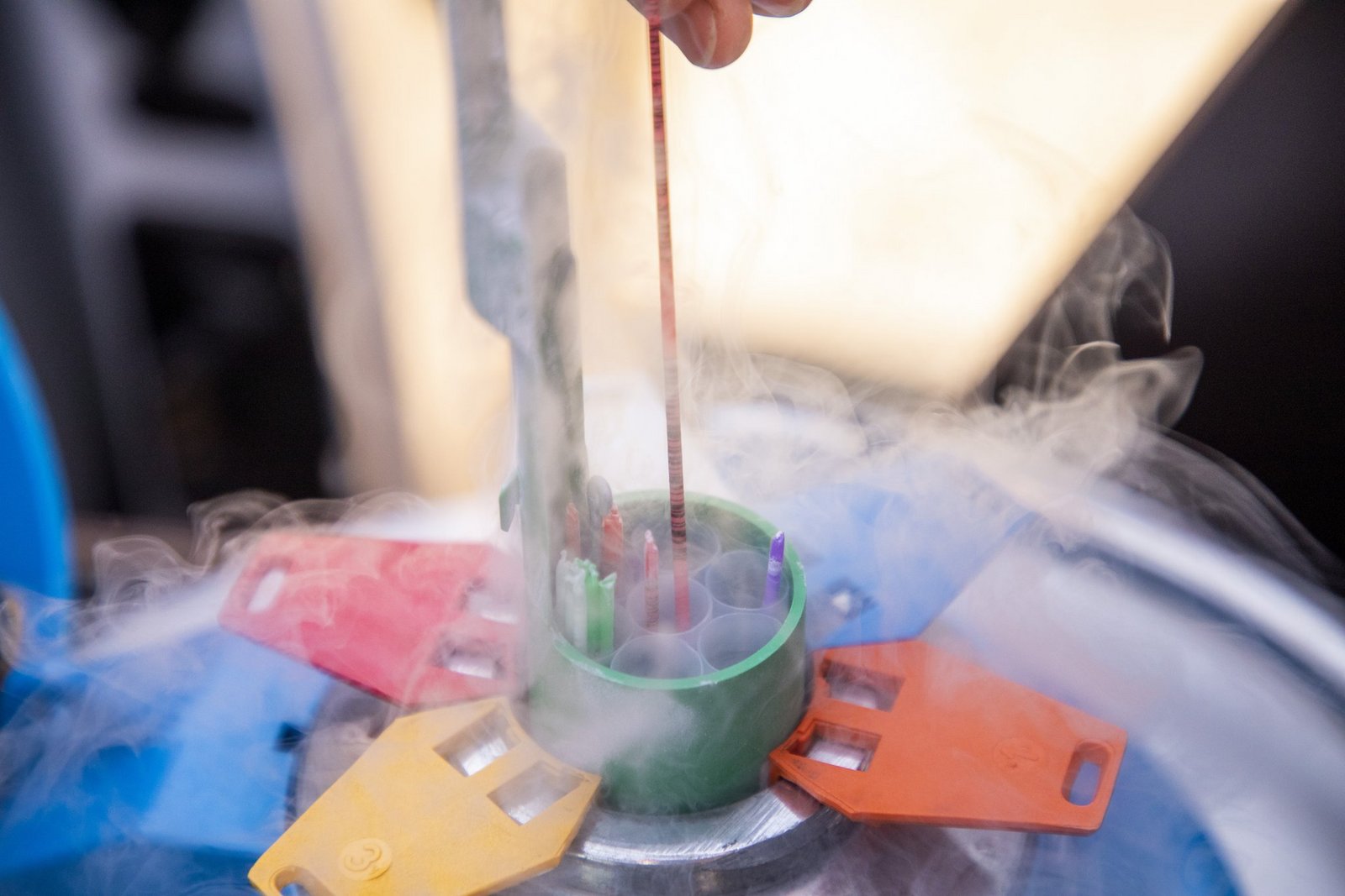 Maximal dauert es nach der Reservation (telefonisch oder online) zwei Wochen, bis die Samendosen für die Besamung zur Verfügung stehen. Alle zwei Wochen werden nämlich die «Kübel», also die Transportbehälter mit flüssigem Stickstoff, mit neuen Dosen ausgerüstet – auch mit denjenigen, die in der Zwischenzeit bestellt wurden.