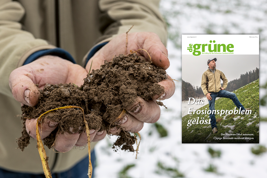 Das Maisfeld von Oliver Liechti aus Uerkheim AG erodierte und die Feinerde fand sich in der Talsohle wieder. Danach hat Liechti sein Anbausystem umgestellt. Bei der Bodenbearbeitung spielt der Reifendruck eine wichtige Rolle. Deshalb erklärt Landwirt Samuel Isch in einem Video seine Reifendruckregelanlage.