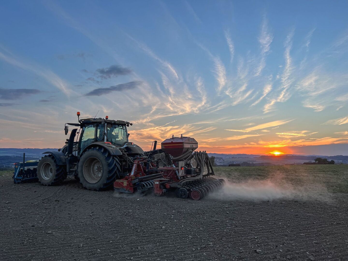 Am 25. August wurden 4 ha Luzerne-Mischung angesät und als Vorbereitung dafür die Steine maschinell aufgelesen.