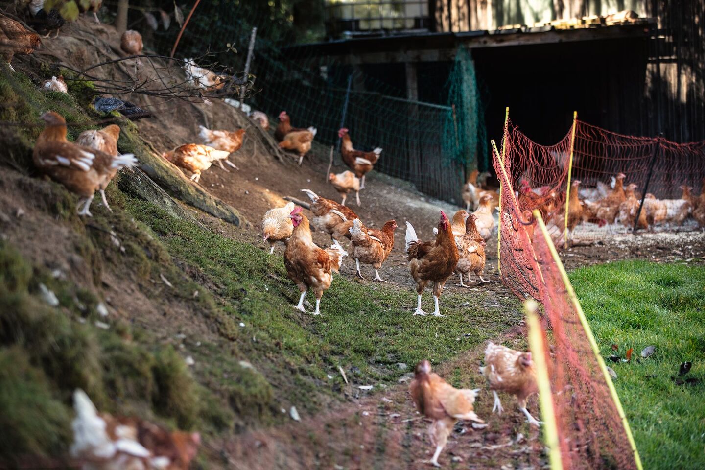 Fredy Stalders Poulets stossen bei den meisten auf Anklang: «Ich hatte aber auch schon eine Kundin, der die Konsistenz und der Geschmack nicht gefallen hat.» Denn die langsam wachsenden Tiere haben ein eher rötliches Fleisch. Stalder füttert sie mit einer Mischung, die in der Mühle Wicki in Schüpfheim LU extra für ihn gemischt wird. Nach einer Rezeptur, die Stalder mit einem befreundeten Agronomen von der Vital AG in Oberentfelden AG entwickelt hat.