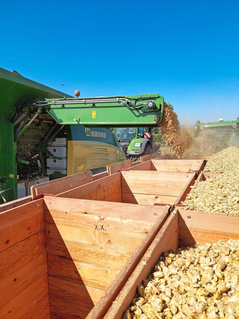 Die beiden sind auch rege im Austausch mit den Premos-Entwicklern von Krone. Nach jedem Pelletier-Tag wird ein Tagesjournal erstellt: ein Worddokument, auf welchem die tagesaktuelle Temperaturkurve des Wetters sowie die Funktionalität und Produktivität der Presse dokumentiert wird. Dabei wird haargenau aufgelistet, wie viele Traktorstunden, Arbeitsstunden, Diesel und Frittieröl für wie viele Tonnen Pellets aufgewendet werden mussten. Diese Zahlen helfen Krone bei der Weiterentwicklung der Premos.