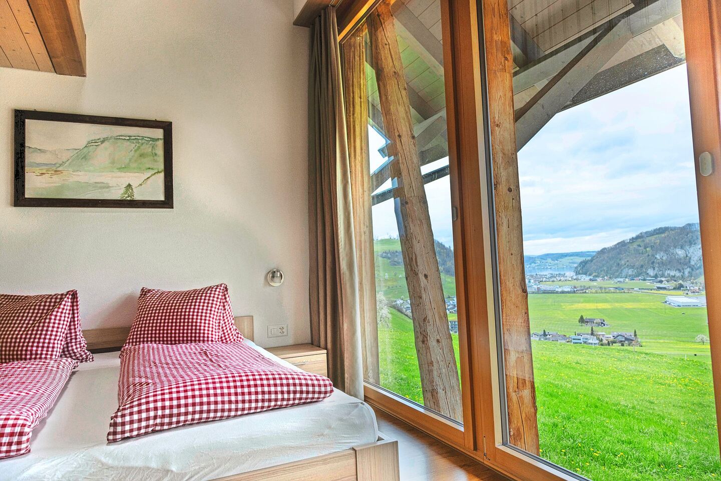 Die Kissen sind frisch bezogen. Die Zimmer sind geputzt und bereit für die nächsten Gäste. Vor der grossen Fensterfront breiten sich Weiden, Bauernhöfe, der Vierwaldstättersee und dahinter das Stanserhorn und weitere Innerschweizer Berge aus.