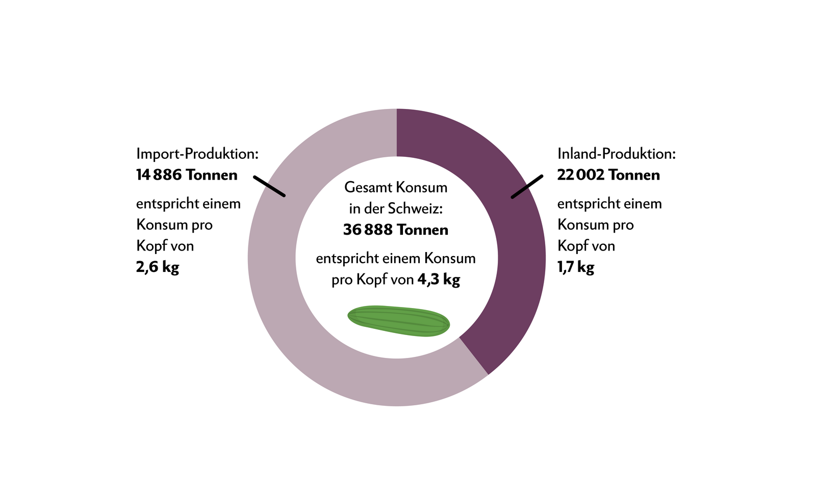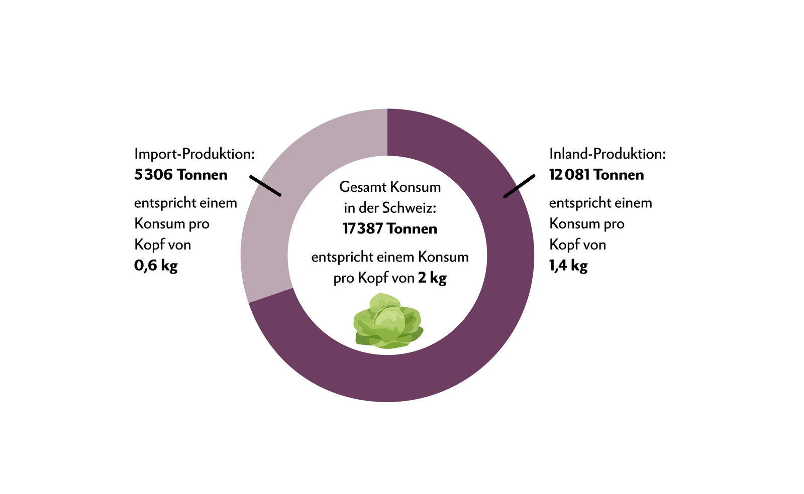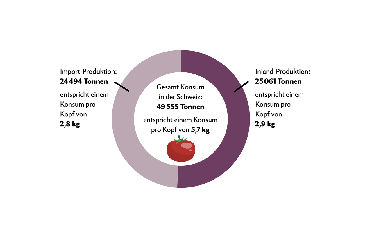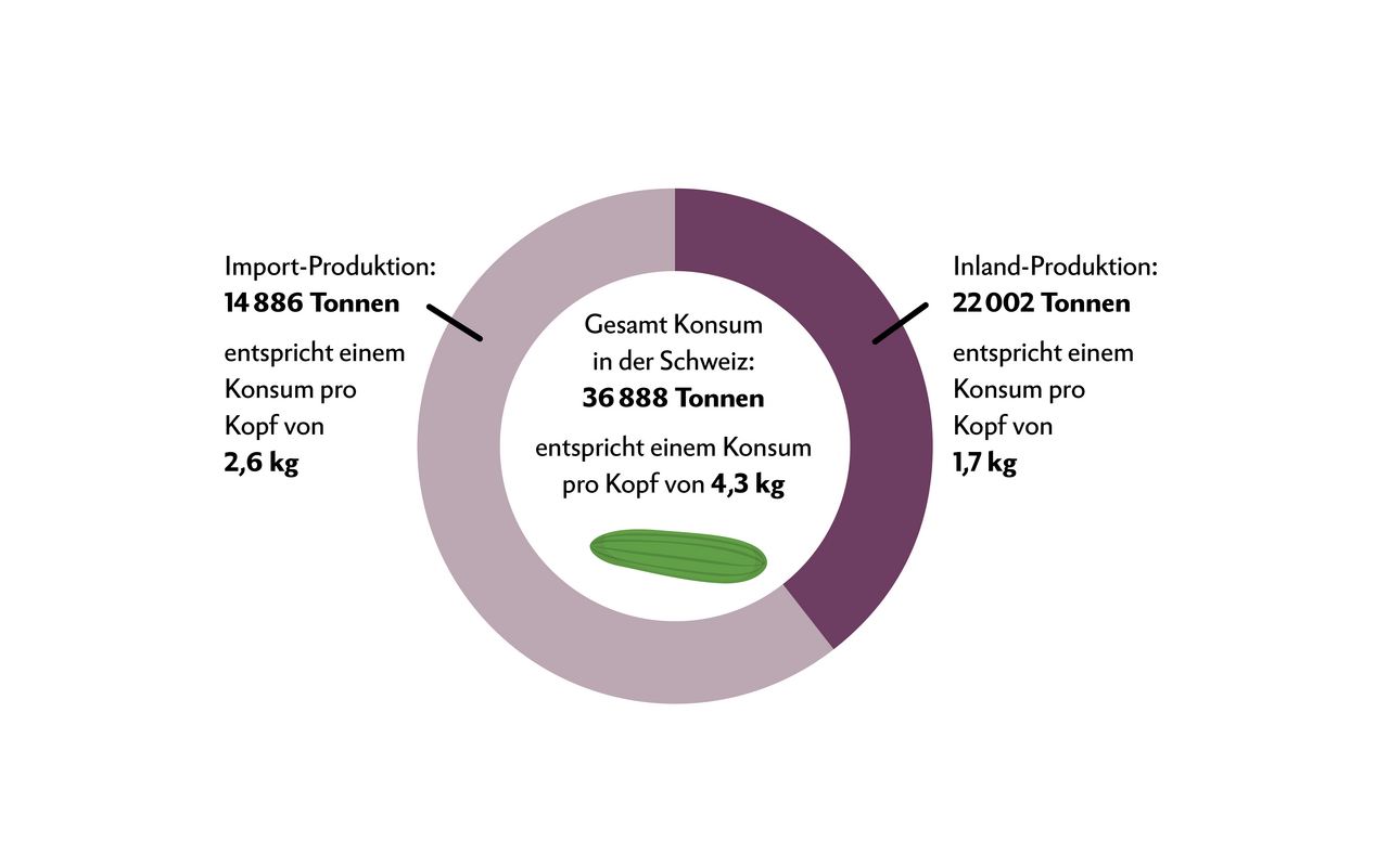 Gemäss Agrarbericht 2022 des BLW betrug der Pro-Kopf-Konsum von Frischgemüse in der Schweiz 2021 etwas mehr als 70 kg. Dieser Wert lag rund 3 kg unter dem Vorjahr und im Bereich des Mittelwertes der vier Vorjahre. Dabei muss auch berücksichtigt werden, dass 2021 das Jahr mit vielen Niederschlägen und Hagel war – die Ernte fiel deshalb unterdurchschnittlich aus.