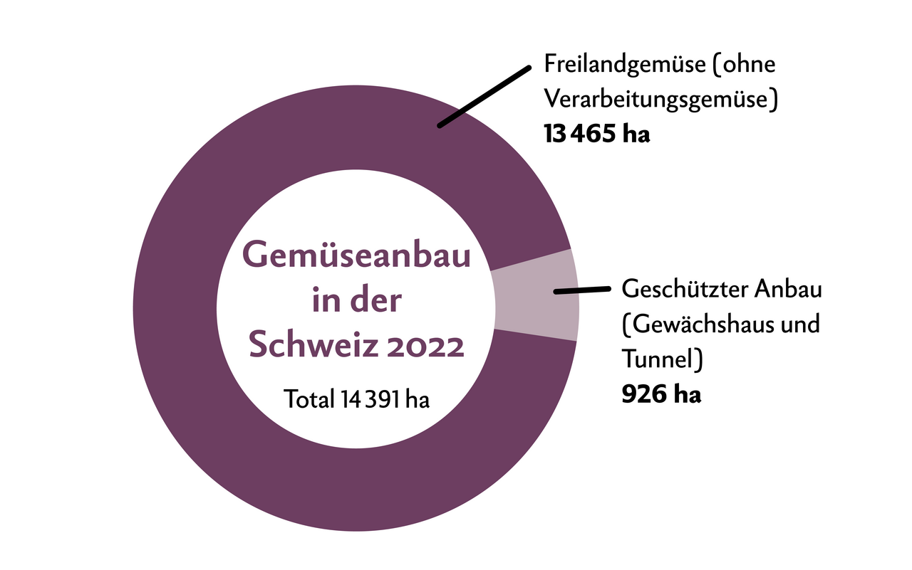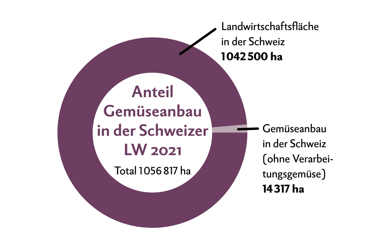 - Der Gemüsebau macht nur 1,4 Prozent der gesamten Landwirtschaftlichen Nutzfläche der Schweiz aus.