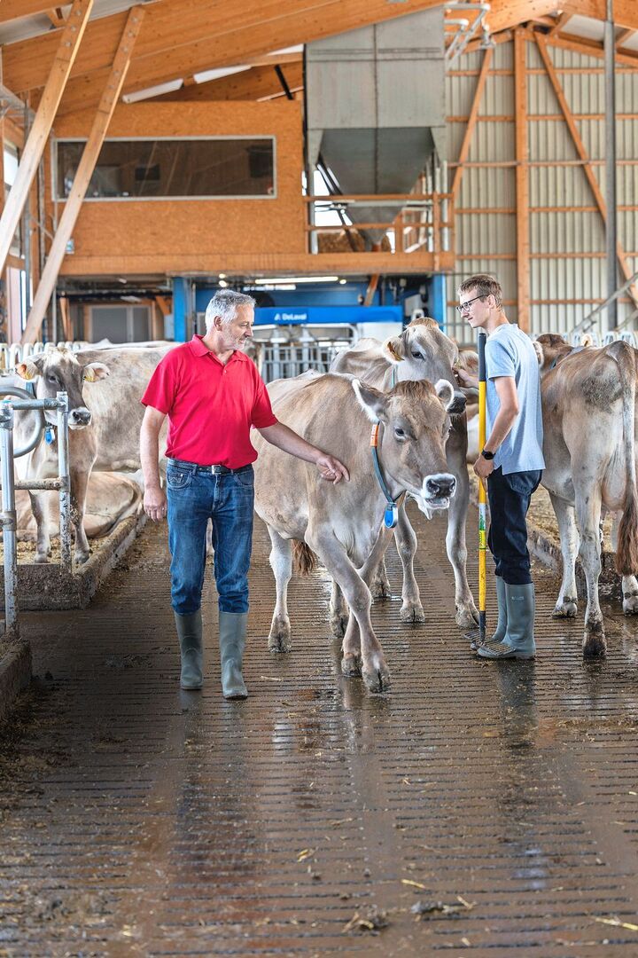 Ansonsten arbeitet die Familie gerne im neuen Stall. Der heutige Arbeitsalltag sei im Vergleich zu früher eine totale Erleichterung und körperlich viel einfacher. Urs Peter sagt: «Heute bin ich viel lockerer.» Das bestätigt auch sein Sohn Fabian, dass sein Vater «cooler» geworden ist. «Früher haben wir mit sechs Melkaggregaten gemolken. Da fühlte ich mich immer ein wenig gestresst beim Melken, weil ich schauen musste, dass alles rund läuft», erzählt Urs Peter.