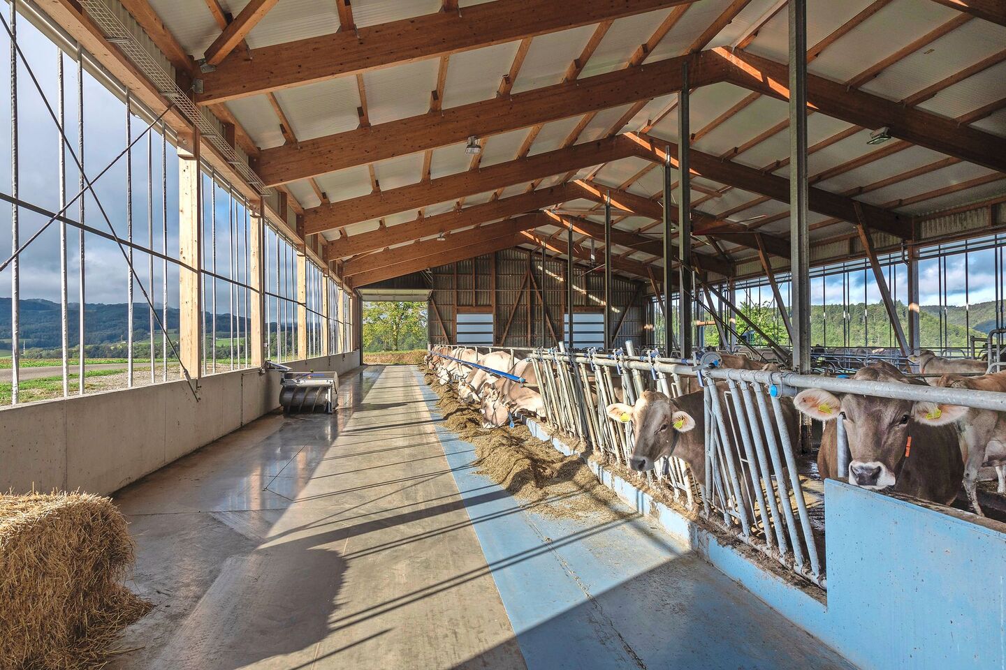 Familie Peter wagte den grossen Schritt vom Anbindestall mit Absauganlage zum Freilaufstall mit Melkroboter. Als Sohn Fabian Peter entschied, den Ausbildungsweg Richtung Landwirtschaft einzuschlagen, war für Vater Urs Peter klar, dass sich die Investition in einen neuen Stall lohnen würde. Vorher hatte Familie Peter aus dem aargauischen Wölflinswil 40 Kühe im Anbindestall mit Absauganlage gemolken. Der alte Stall war bereits 50 Jahre alt. Diverse Reparaturarbeiten und Investitionen standen an.