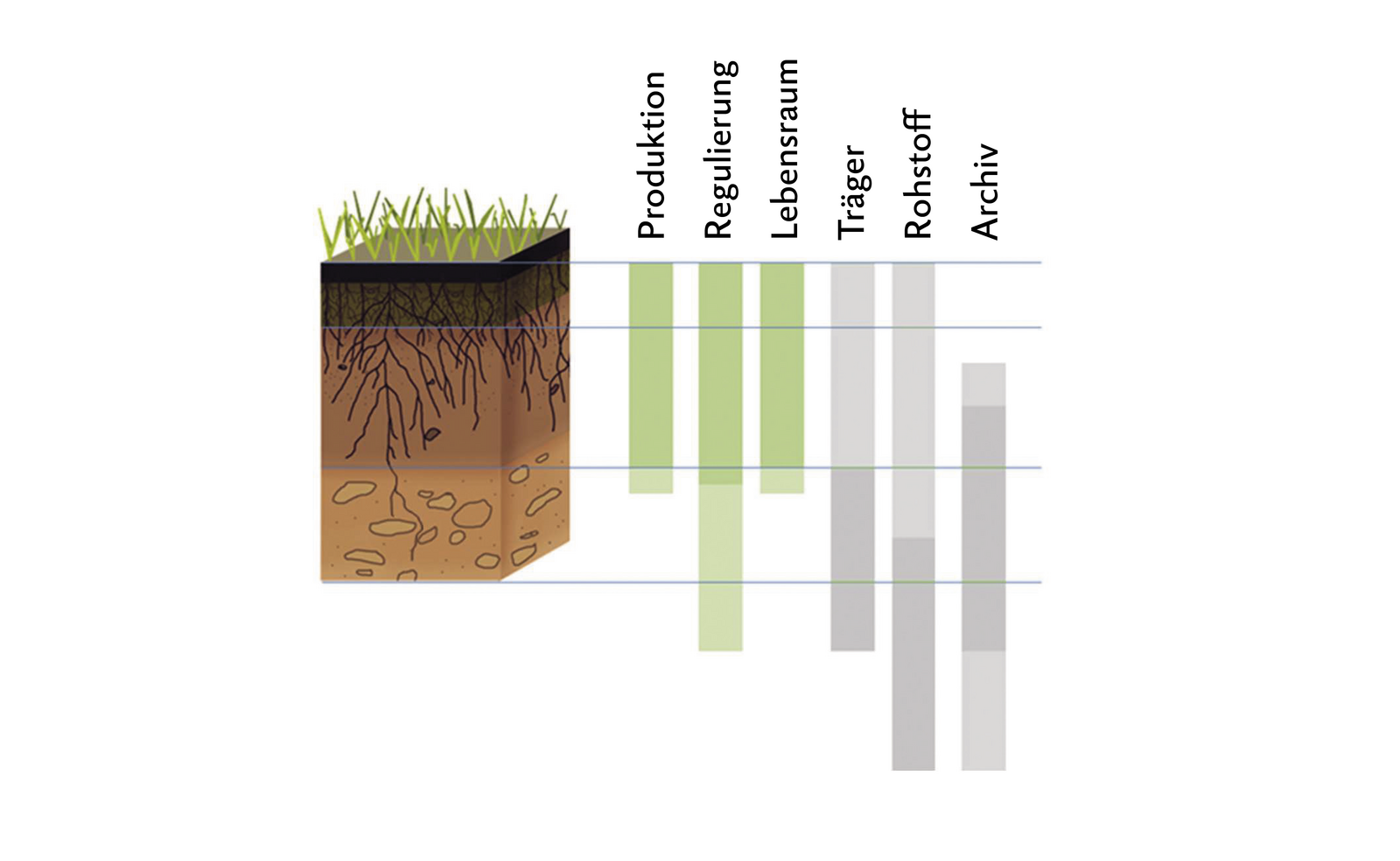 Böden sind mehr als nur Fläche. Sie erfüllen zahlreiche Funktionen. Die Produktionsfunktion, die Regulierungsfunktion und die Lebensraumfunktion der Schweizer Böden werden gegenwärtig jedoch durch Bautätigkeit, Erosion, Verdichtung und Schadstoffbelastungen irreversibel beschädigt.