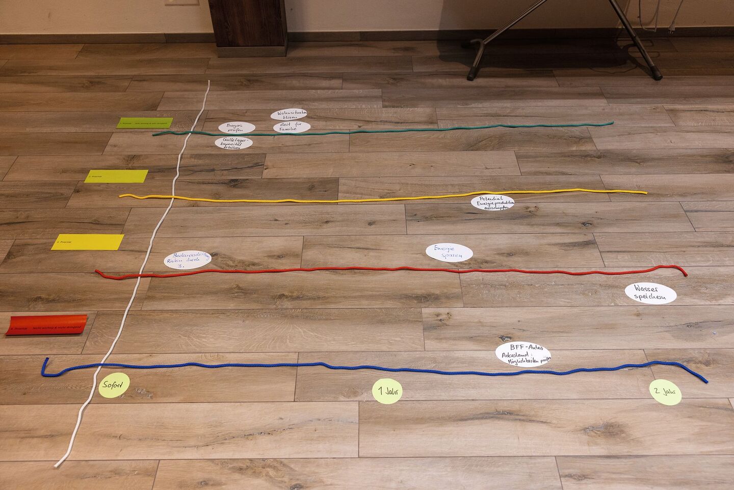 Im Feedbackgespräch wurden diverse Ideen für mögliche Verbesserungsmassnahmen auf Kärtchen notiert und gemeinsam diskutiert. Diese wurden von Serge und Jean-Jacques Duperrex anschliessend auf einem Zeitstrahl priorisiert.