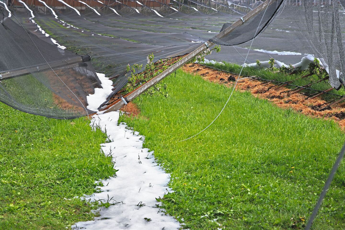 Ende April 2022 hat ein kurzer Hagelschauer in Lupfig AG eine neue Obstanlage komplett zerstört. Vier Jahre Aufbauarbeit von Landwirt Andreas Suter liegen am Boden. Der finanzielle Schaden ist noch unklar. Doch den jungen Landwirt, der den Loorhof Anfang 2022 von seinen Eltern übernommen, trifft der Schaden hart: Obstbau mit Direktvermarktung ist das wichtigste Standbein.