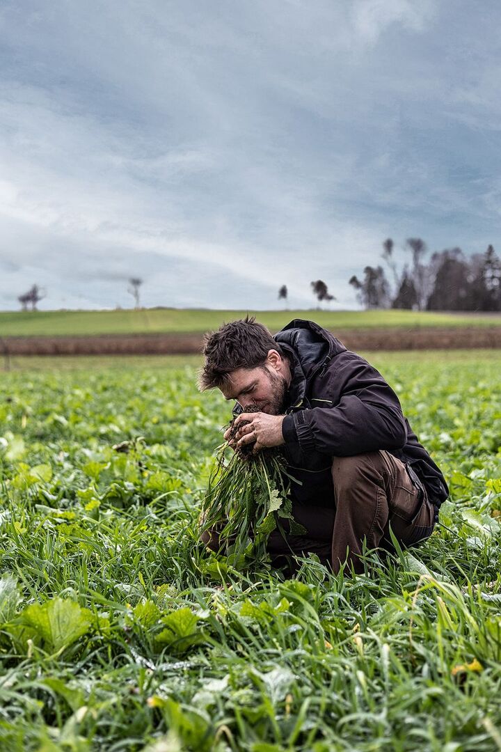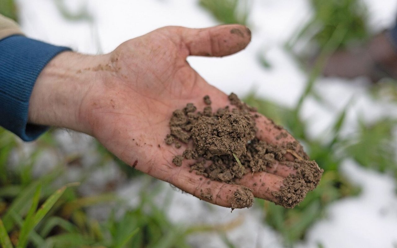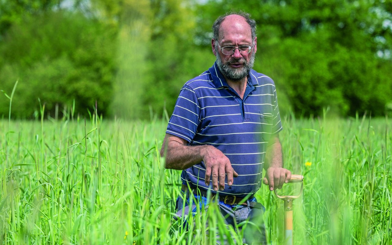 Markus Götsch, Landwirt in Zürich, nimmt oft einen Spaten mit auf den Traktor, um zu sehen, was sich im Boden tut.