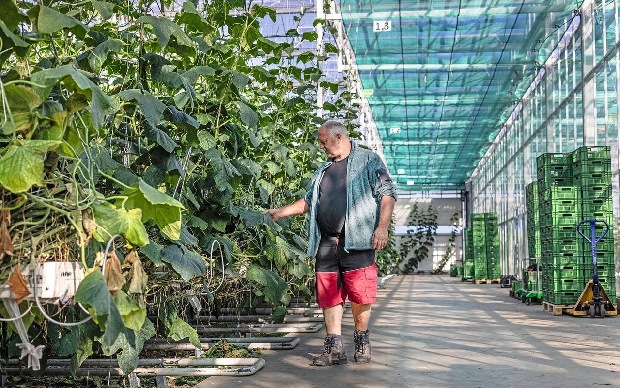 Thomas Wyssa produziert in Galmiz FR auch ohne Boden Gemüse: Im Gewächshaus und in einer Hydroanlage. Dennoch wächst der grösste Teil im Freiland.