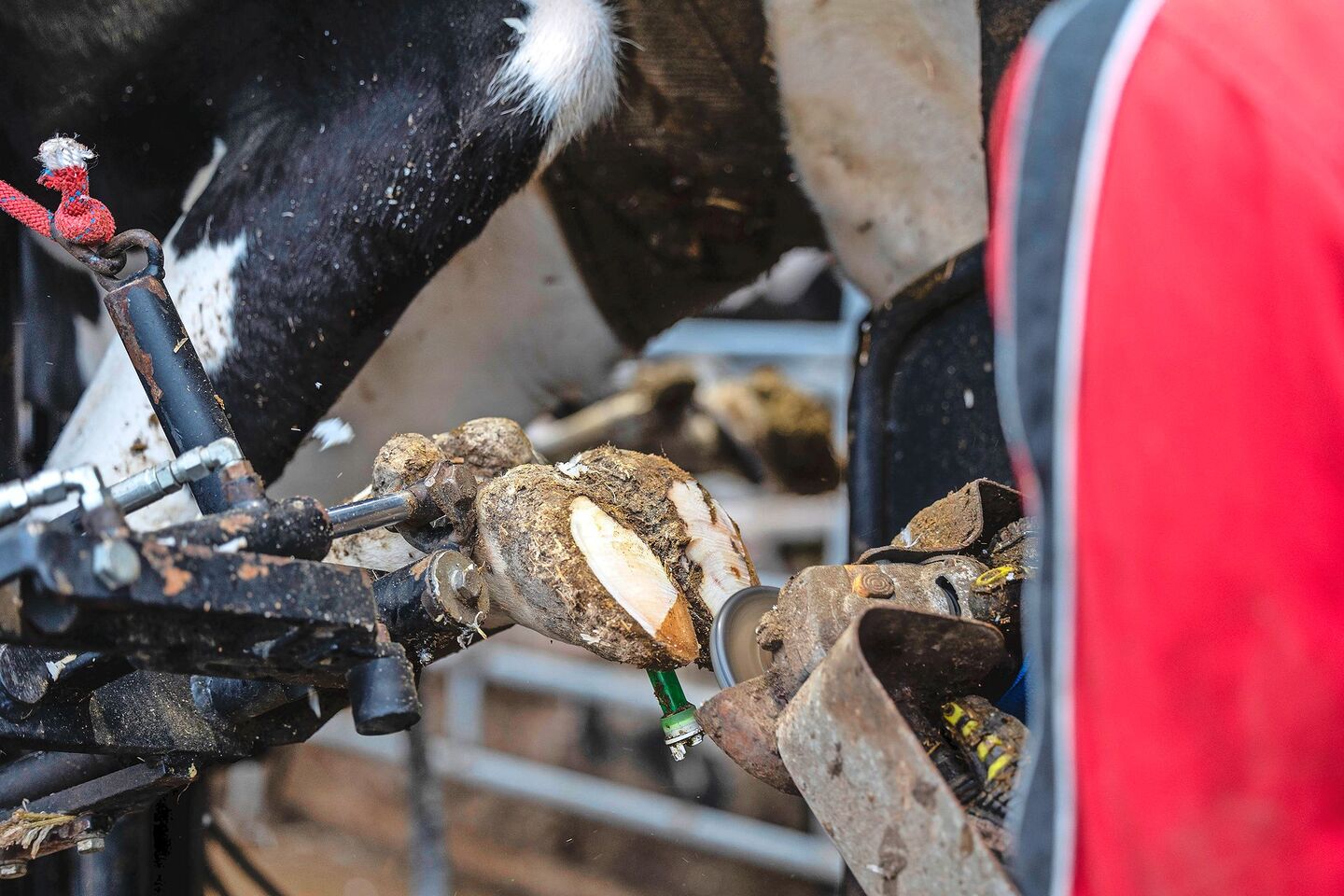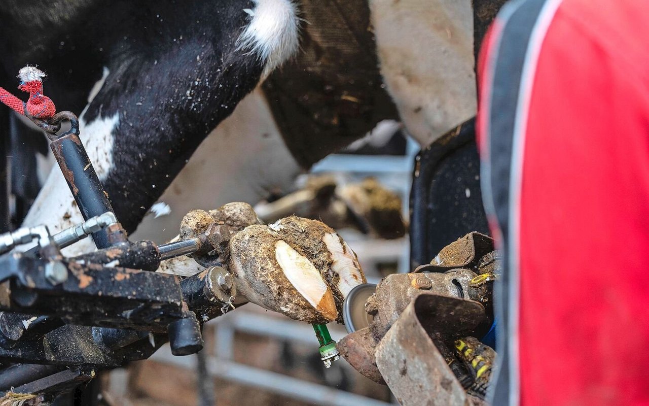 Suter schneidet nach der «Balance Methode», welche sich am Skelettbau der Kuh orientiert. Die Belastung auf die Sehnen und Bänder kann durch diese Methode minimiert werden.