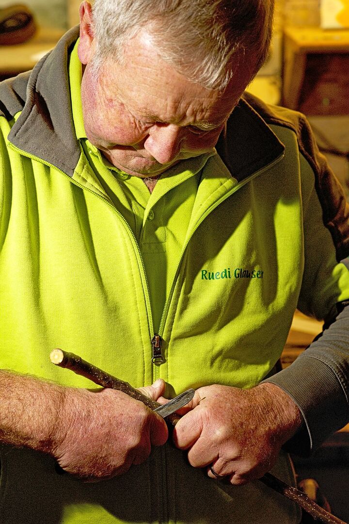 Auch beim Edelreis schneidet Glauser eine Fläche mit einer Gegenzunge.