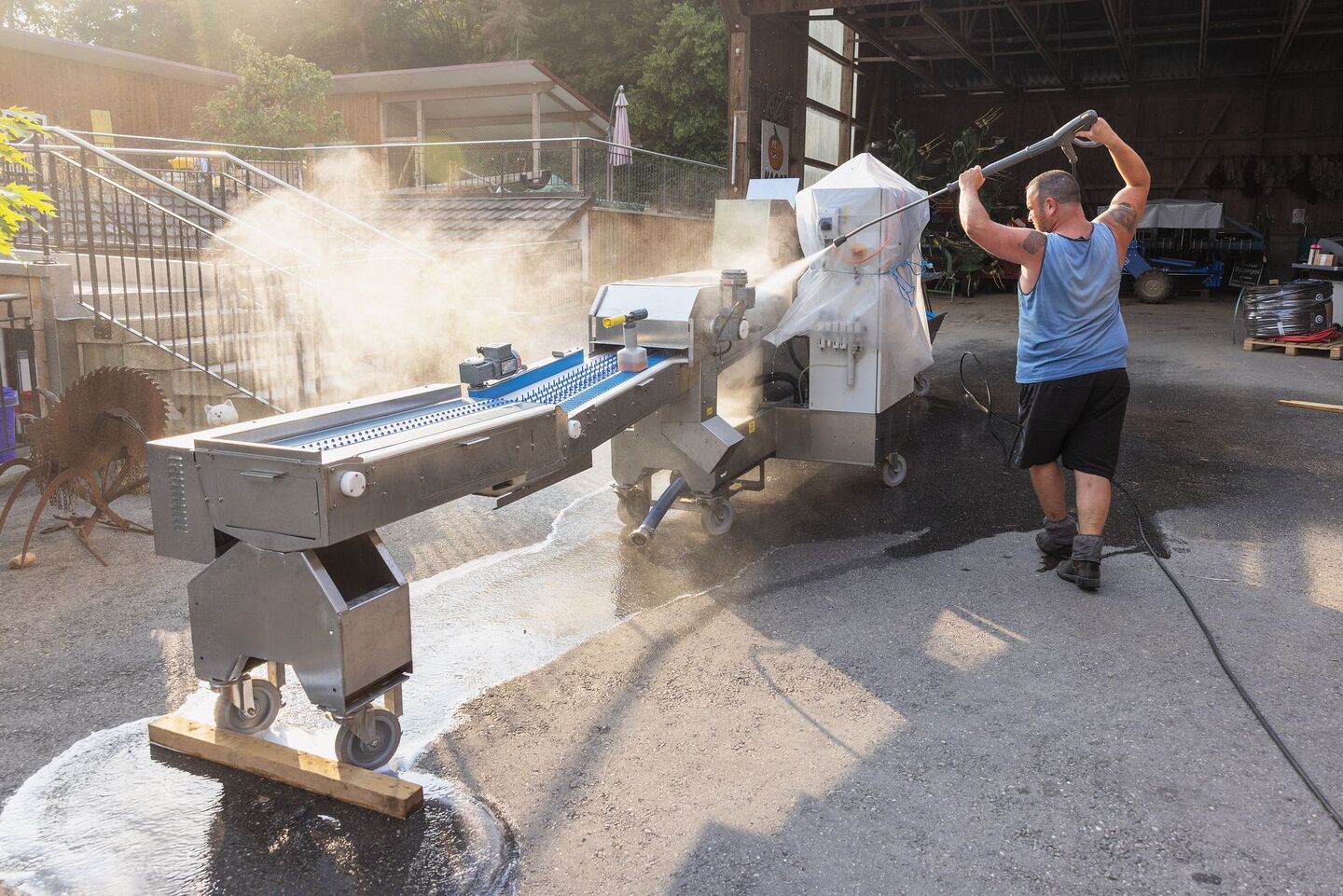 Diese Eigenmechanisierung haben sie in den letzten Monaten nicht gross ausgebaut, aber doch so, dass einiges an Neuem zusammenkommt: Die Spargeln sortieren sie nicht mehr auf einem Band. Eine neue Maschine wäscht und sortiert für Duperrex.