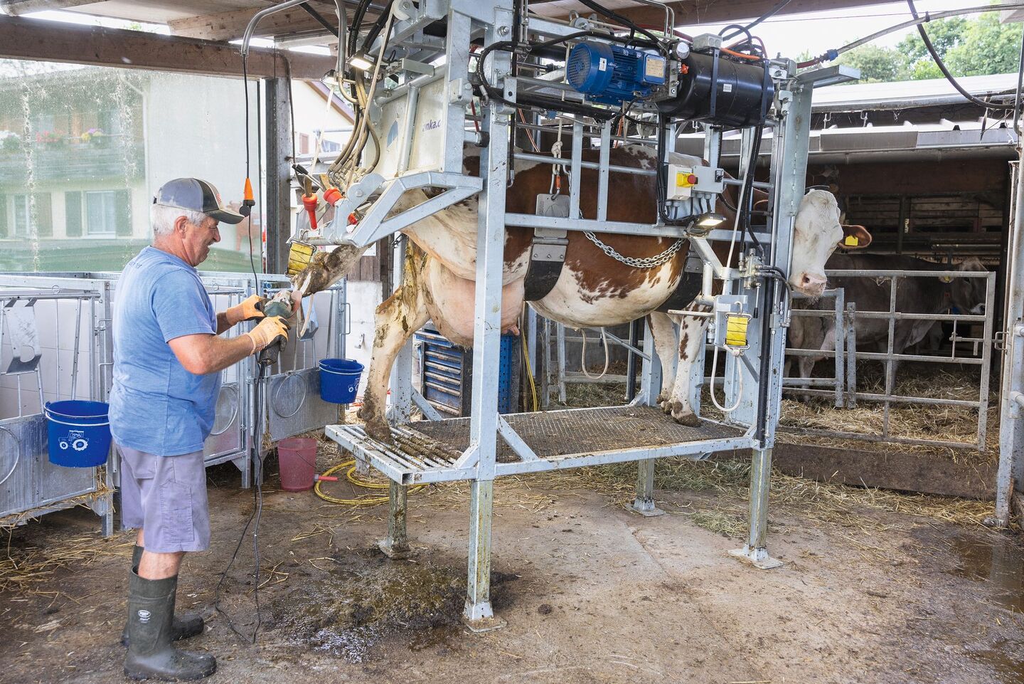 Ein neuer, hydraulischer Klauenstand erleichtert vor allem Jacqui Duperrex den Arbeitsalltag. Und der Occasion-Hoflader, den sie zuerst gemietet und nun gekauft haben, ist praktisch für Arbeiten im Gelände, etwa für den Paloxen-Transport.