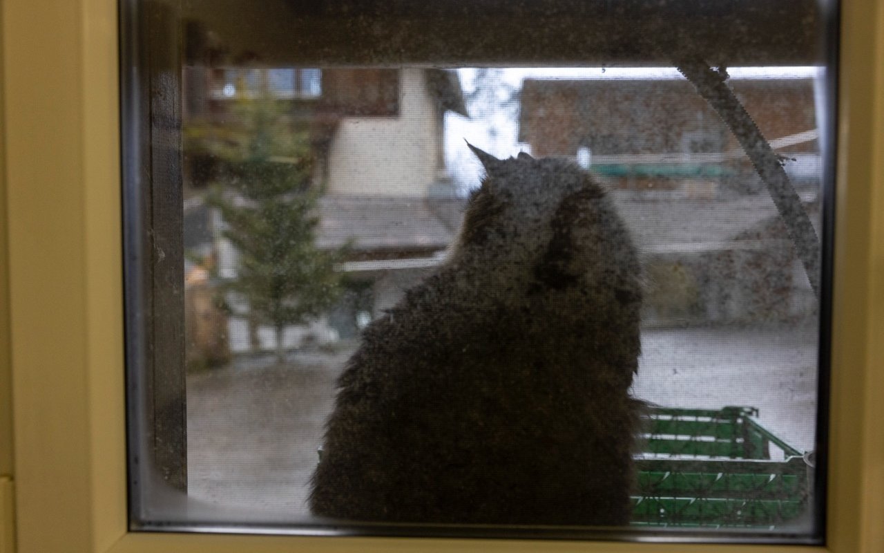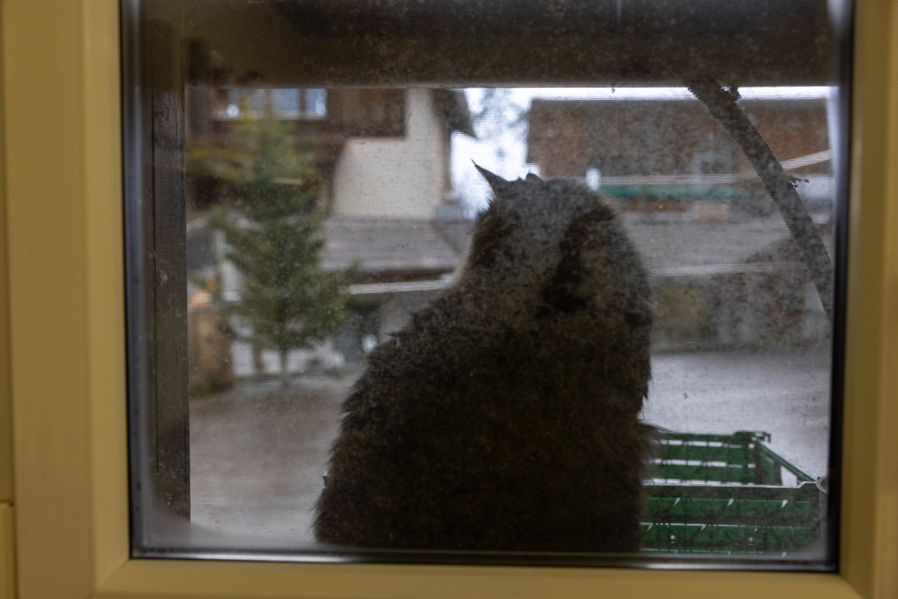Kater Märki beobachtet, wie am 1. Februar Kürbissuppe gekocht wird. Duperrex’ zehn Hofkatzen sind gut genährt, damit sich genug Energie haben, um Mäuse zu fangen.