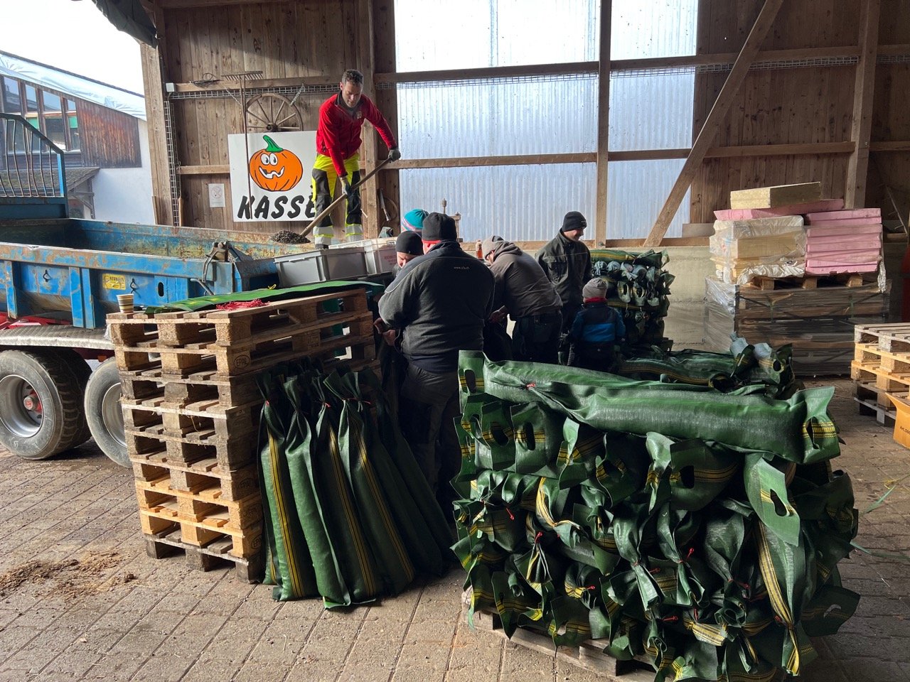 Am 29. Januar werden weitere 700 Sandsäcke für den Kürbisanbau mit Sand gefüllt.