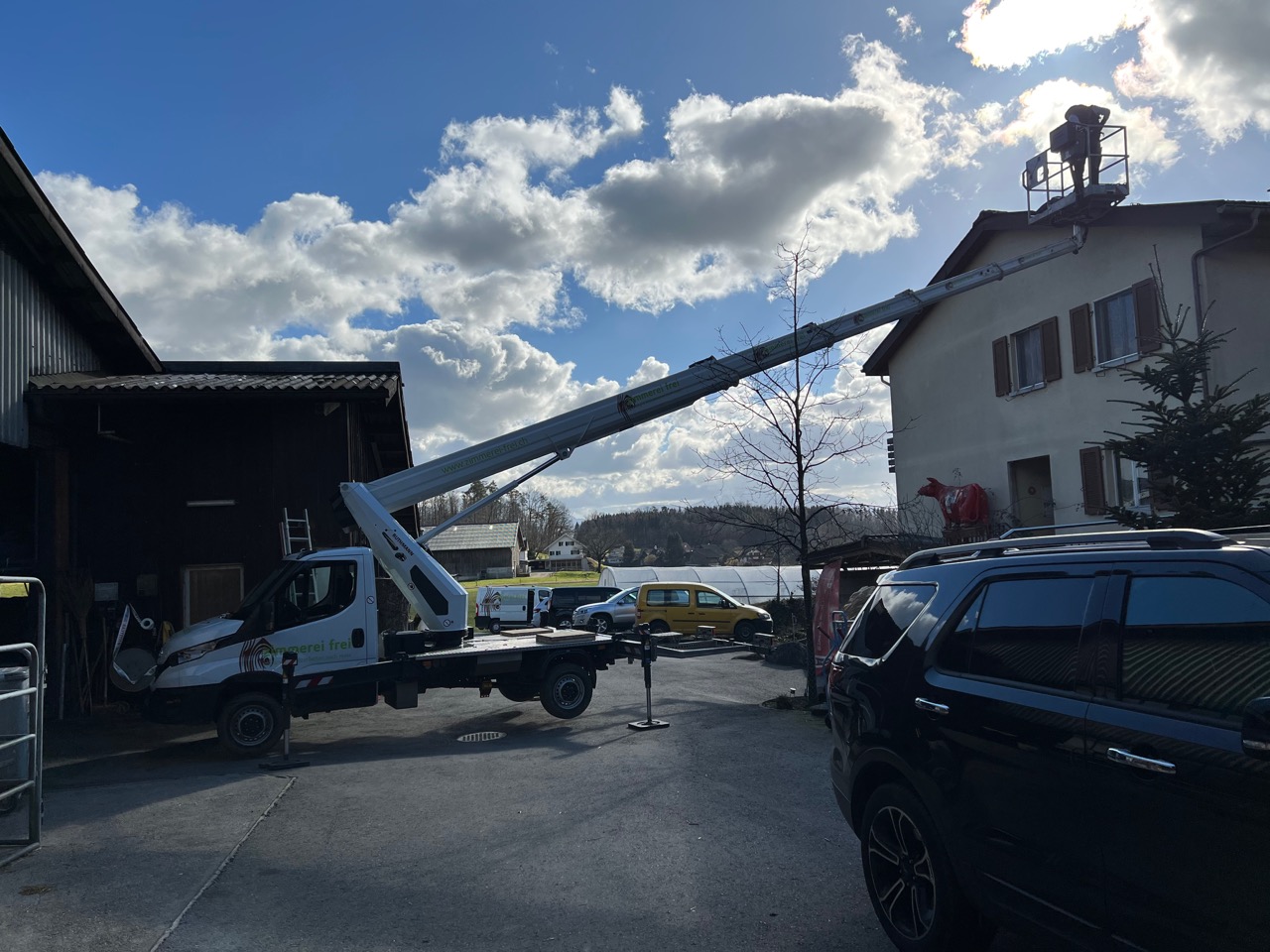 Nach dem Sturm in der Nacht zum 7. Februar brauchte es eine neue Blache auf dem Hausdach.