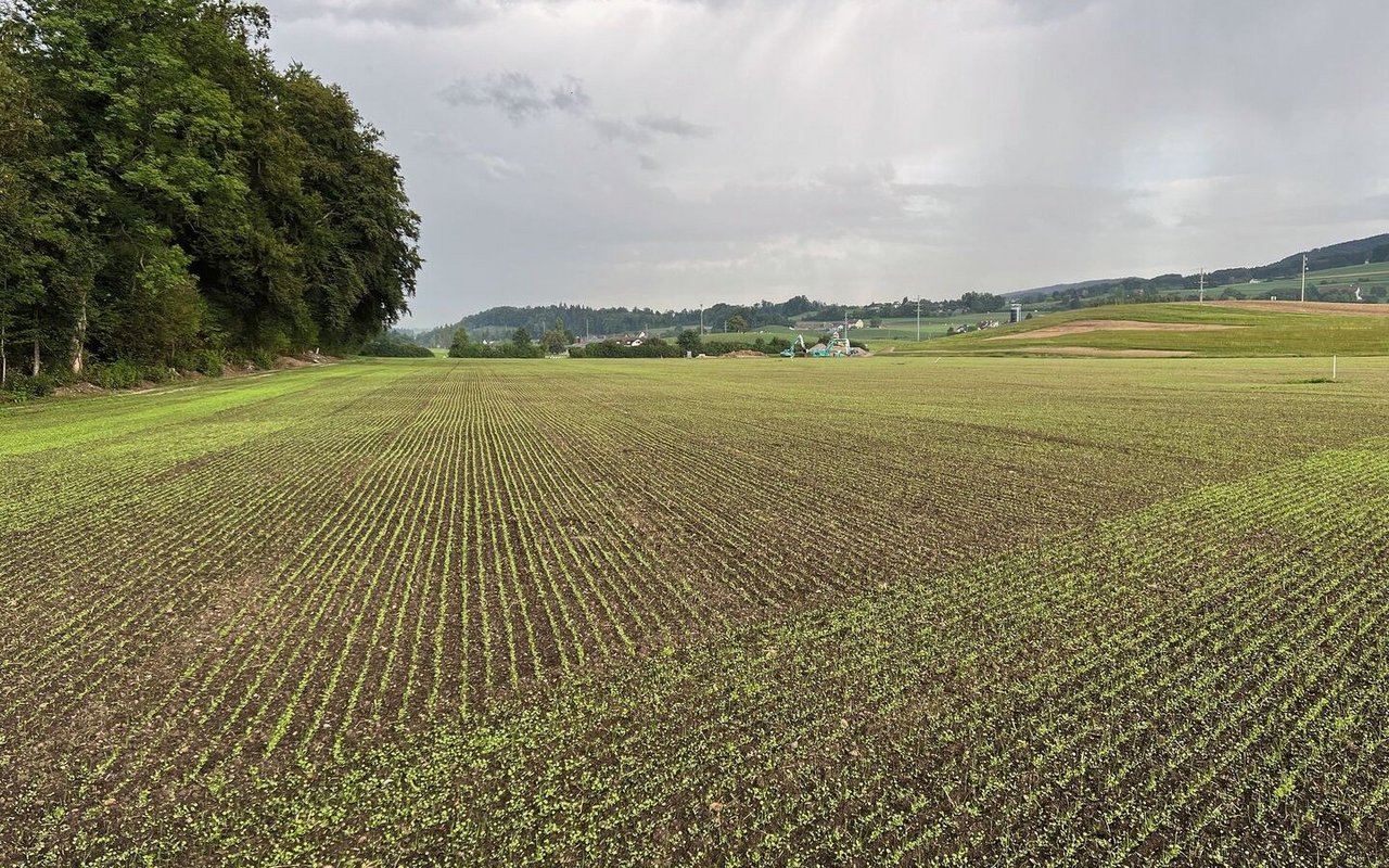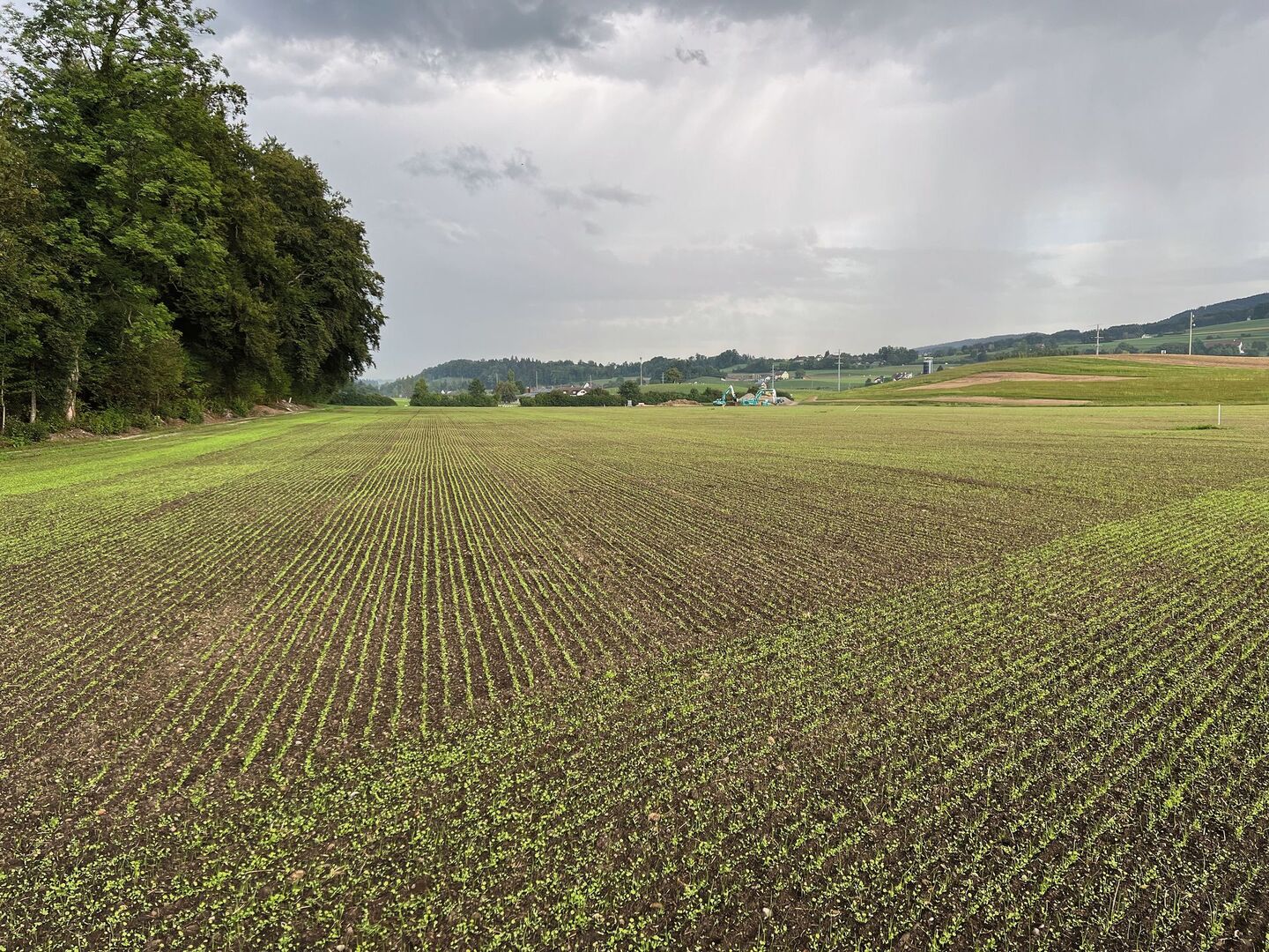 Am 5. September zeigte sich auf dem Feldrundgang, wie das Gras auf der aufgewerteten, neu angesäten Fläche gedeiht.