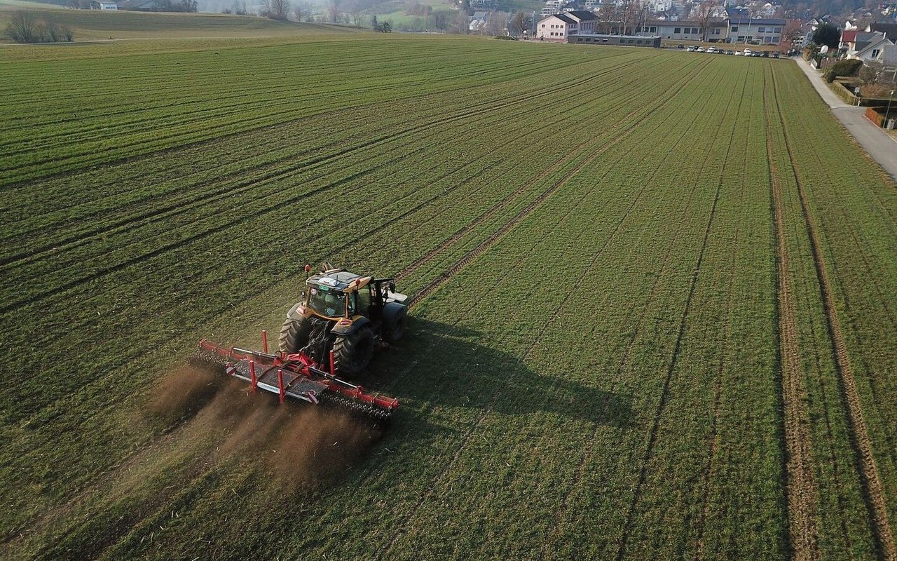 Am 8. März haben Duperrex’ die Pöttinger Unkrauthacke Rotacare in Weizen-, Gerste- und Spargelflächen getestet.