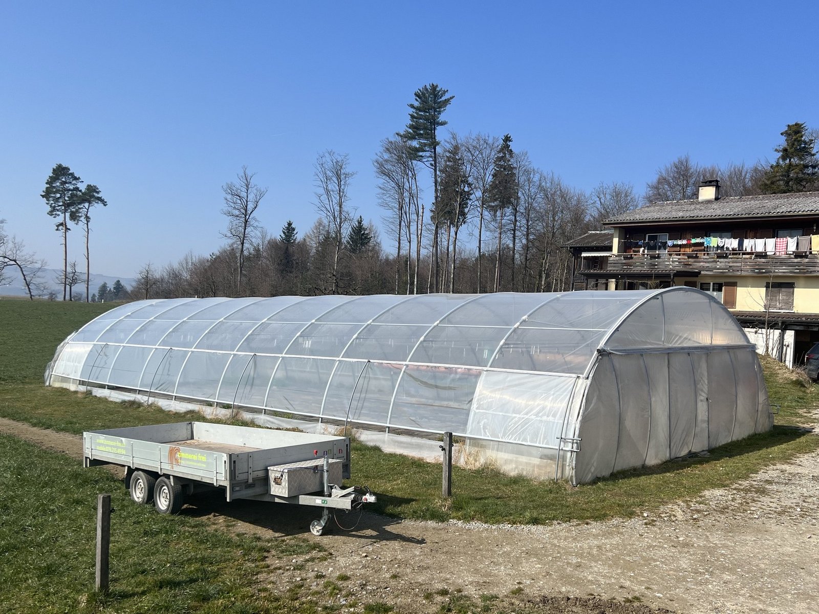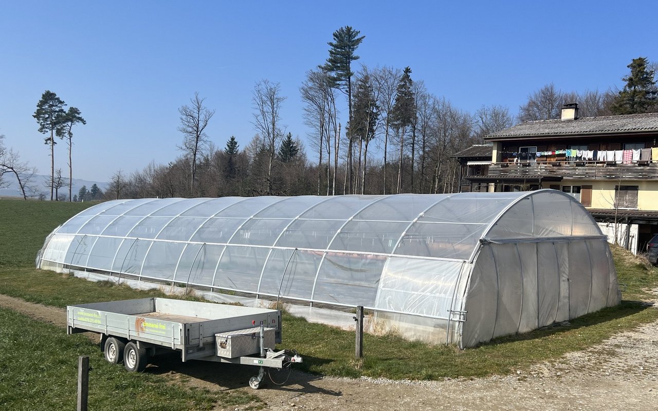 Frisch repariert: Im Folientunnel zieht Maya Duperrex alle Kürbisse vor und baut Tomaten, Gurken und Ziergewächse an.