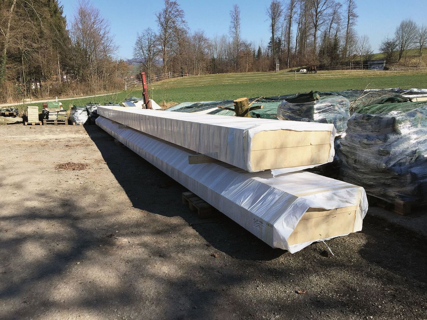 Am 4. März ist das Holz für die neue Unterkonstruktion des Daches angeliefert worden.