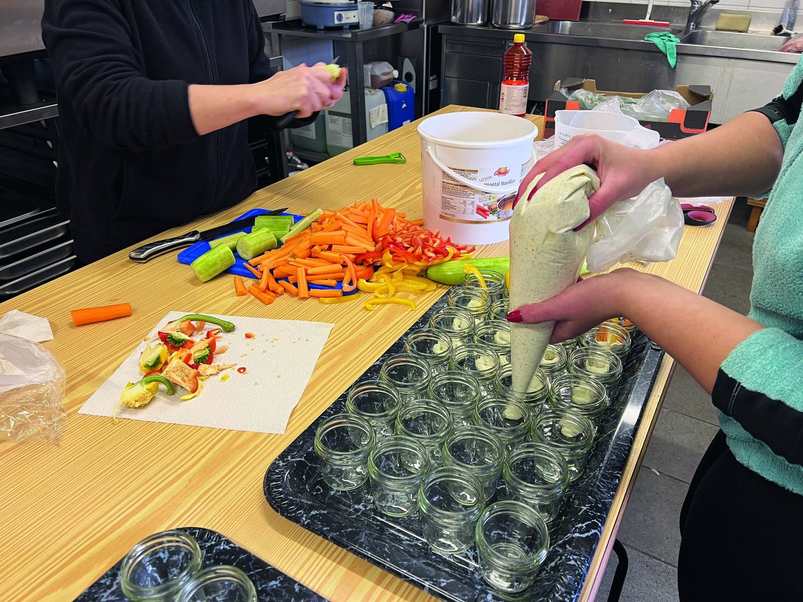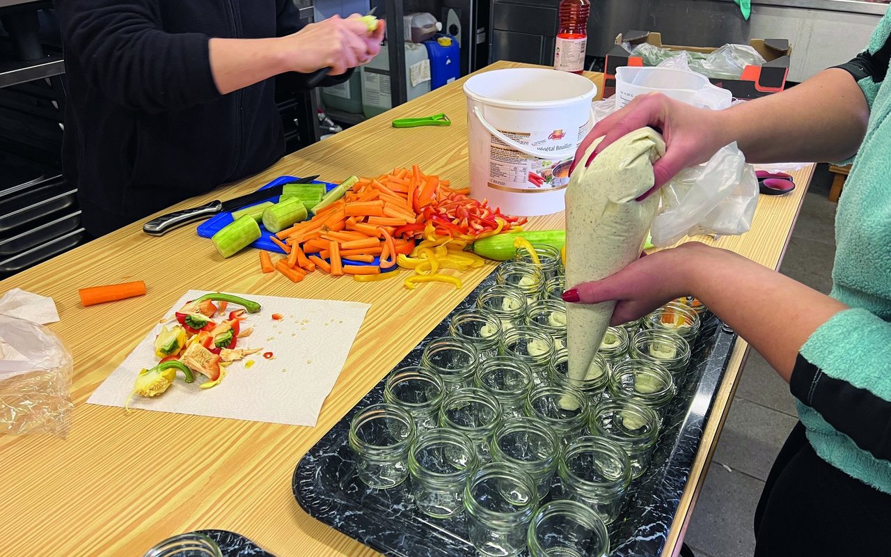 Für den «Klaushöck» vom 6. Dezember mit 38 Personen gab es einiges an Gemüse zu schneiden und Dip in Gläser abzufüllen.