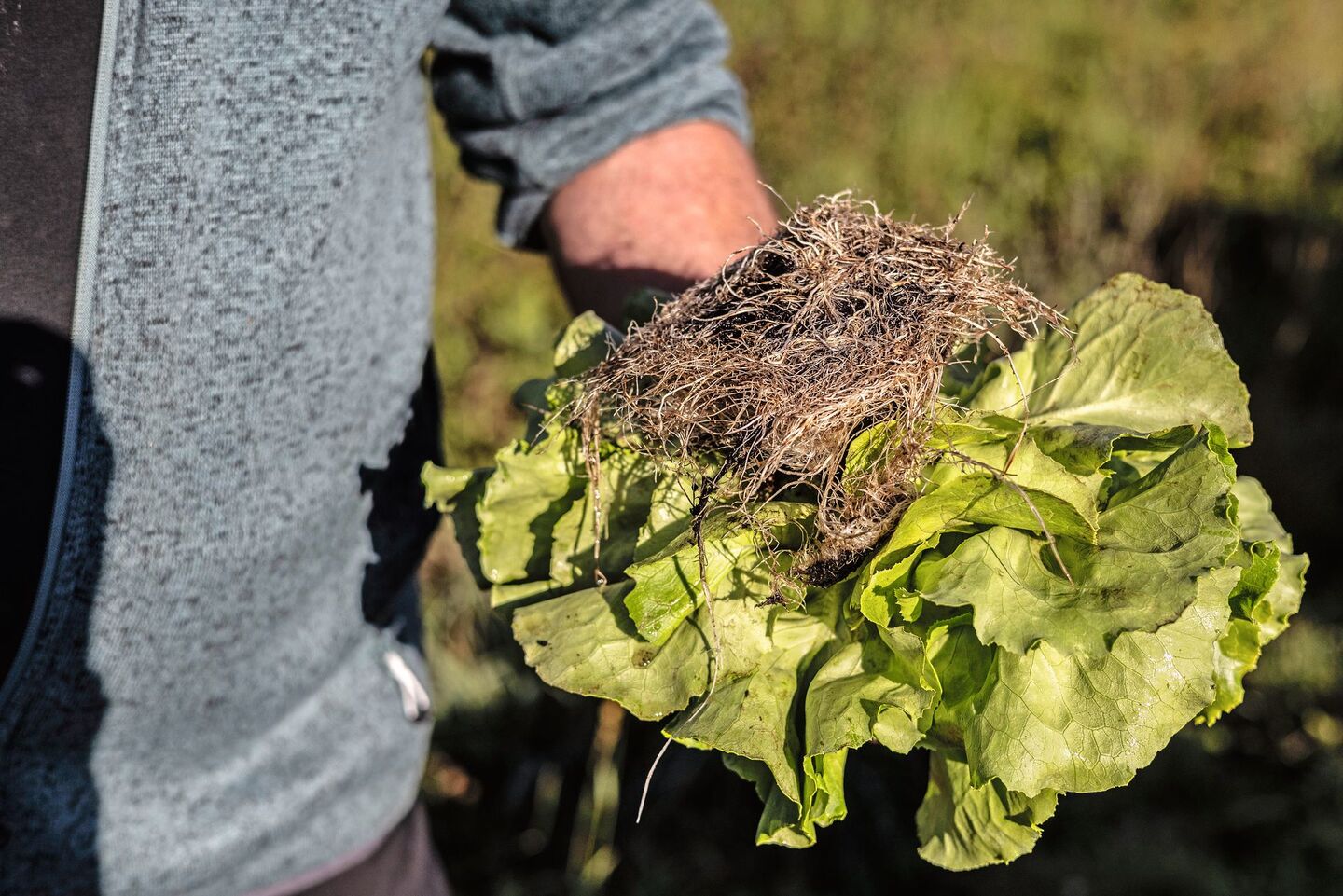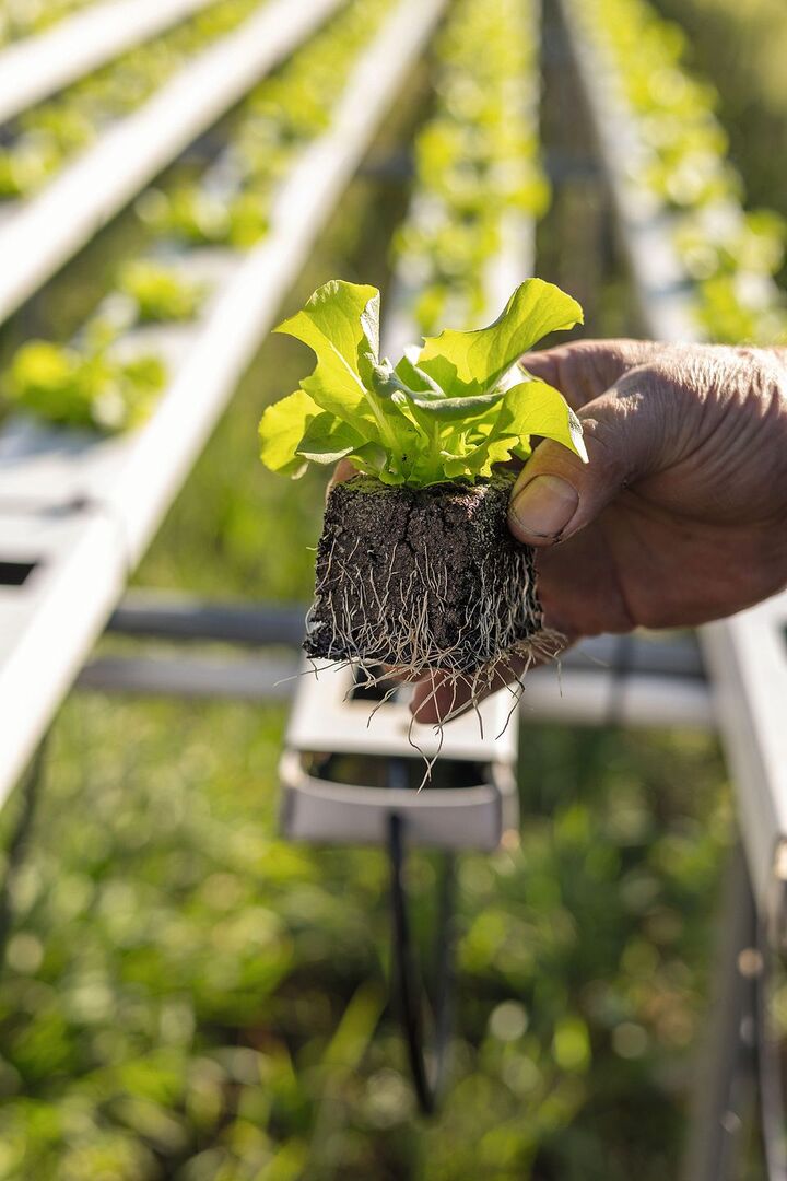 Wer nun das Gefühl hat, die Salate seien weniger gesund, sollte zum einen Blick auf das Wurzelwerk werfen: Das macht einen prächtigen Eindruck, viele feinverzweigte, lange Wurzeln kommen zum Vorschein, wenn Wyssa einen Kopfsalat aus der Rinne zieht. Zum anderen hat eine Studiengruppe der ETH zwei Jahre lang die Inhaltsstoffe der Hydrosalate mit denen von Freiland-Salaten verglichen. Dabei zeigte sich, dass die Produkte gleichwertig sind, die Hydrosalate haben ein bisschen mehr Kalzium.