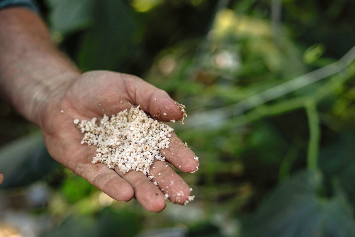 Wyssa kennt den Druck auf die Flächen. «Der Boden ist unser Kapital», sagt er. Er führt seinen Freiland-Flächen Kompost zu, mit jeder Salat-Pflanzung komme Torf zurück in den Boden. Die Ernterückstände werden auf dem Feld eingearbeitet, ebenso die Kokosfaser- und Perlit-Substrate aus dem Gewächshaus. Während Kokosfasern Wasser speichern, dient Perlit (gebrannter Vulkanstein) eher der Drainage. Wyssa kauft auch Mist zu und arbeitet mit abfrierenden Gründüngungen.
