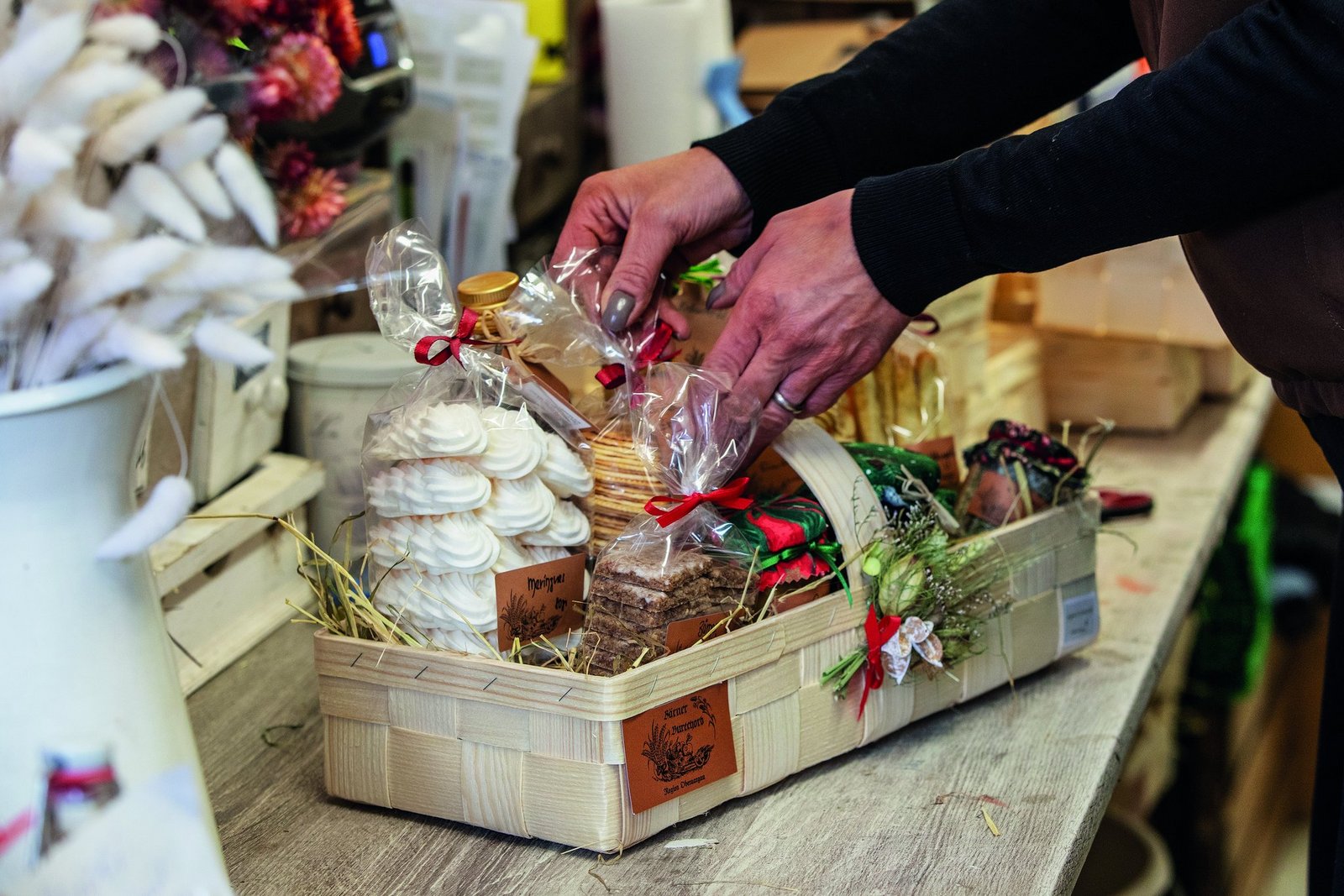 - Die Geschenkkörbe haben zum Jahresende hin Hochsaison.