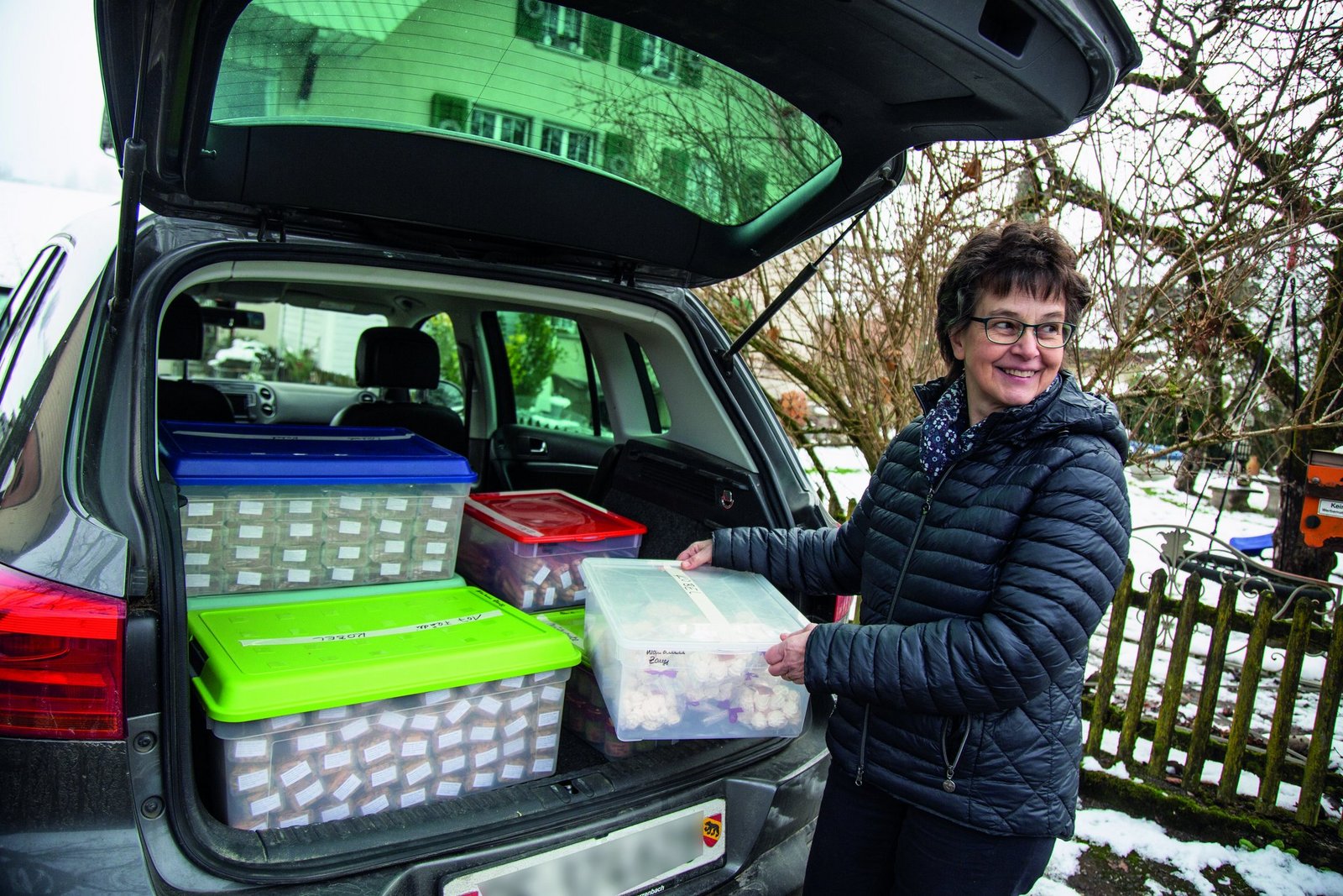 Ich backe wirklich gerne», sagt Marianne Zaugg und deutet auf den prall gefüllten Kofferraum. Da stapeln sich Plastikboxen mit Meringues, Änis-Chräbeli, Bärner Läckerli und Weihnachtsgebäck. Liebevoll in Zellophan verpackt, sauber etikettiert und beschriftet. Ein Hauch Müdigkeit ist dennoch zu spüren: Von früh morgens bis spät abends steht sie in der Vorweihnachtszeit in ihrer Küche in Wyssachen BE.
