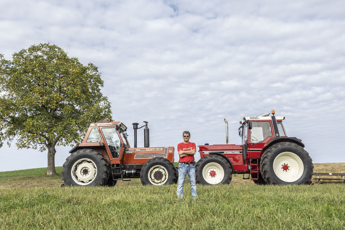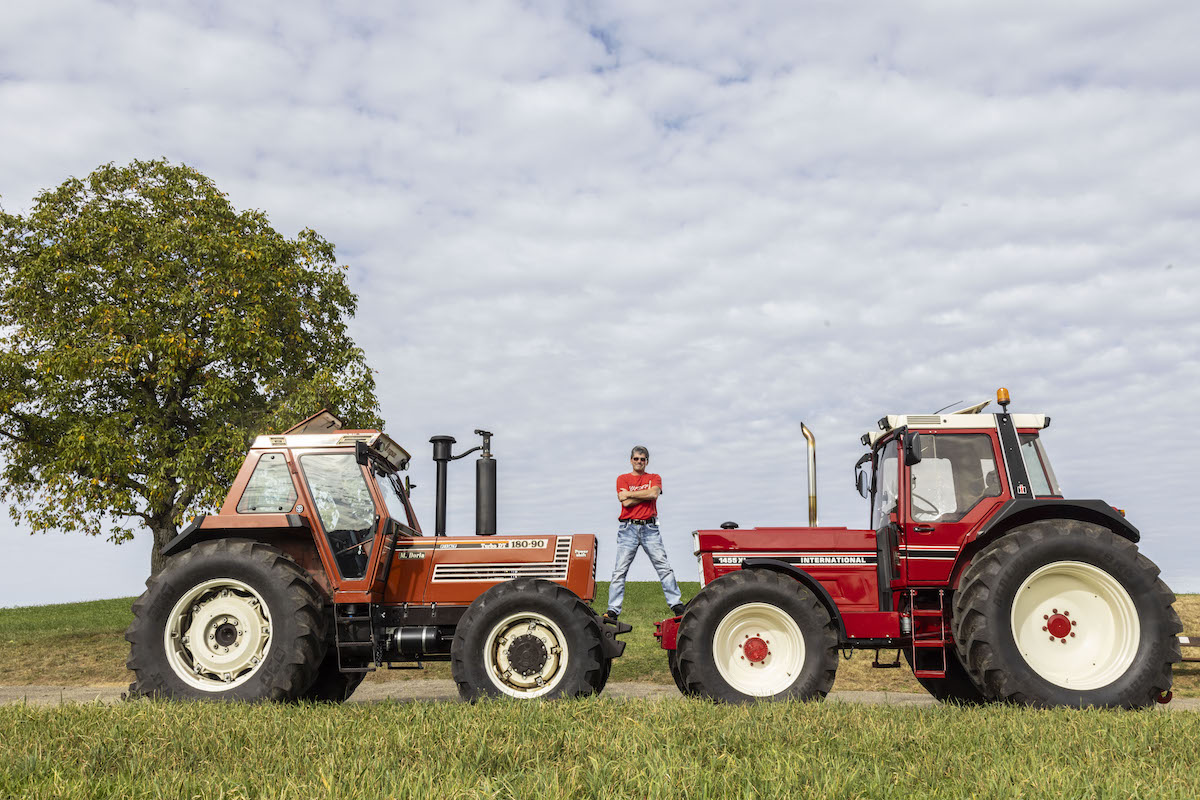«Ich bin auf einem Bauernhof aufgewachsen und wir hatten einen Bührer PF21 im Einsatz, danach stellten wir auf Fiat um. Nach meiner Lehre als Landmaschinenmechaniker 1982 bis 1986 auf Fiat in Diegten wusste ich, dass die Fiat-Technik super funktioniert. Mit 50 habe ich mir meine Träume verwirklicht: Mein Ziel war es, die Grössten der Baureihen, also einen Fiat 180-90 D und einen IHC 1455 XL, mit der alten Form zu kaufen und bereit zu stellen. Diese Traktoren sind Legenden ohne Schnickschnack, dafür mit Power, Rauch und Lärm. Beide sind eingelöst und werden teilweise auf dem Hof meines Bruders und natürlich für Oldtimer-Treffen eingesetzt.»