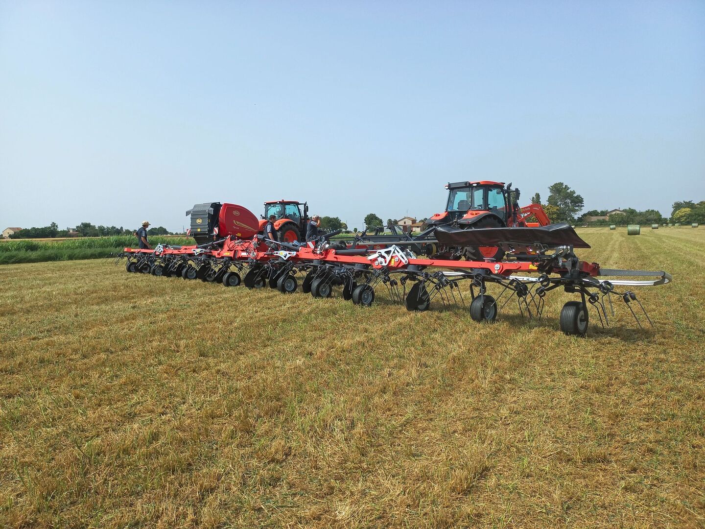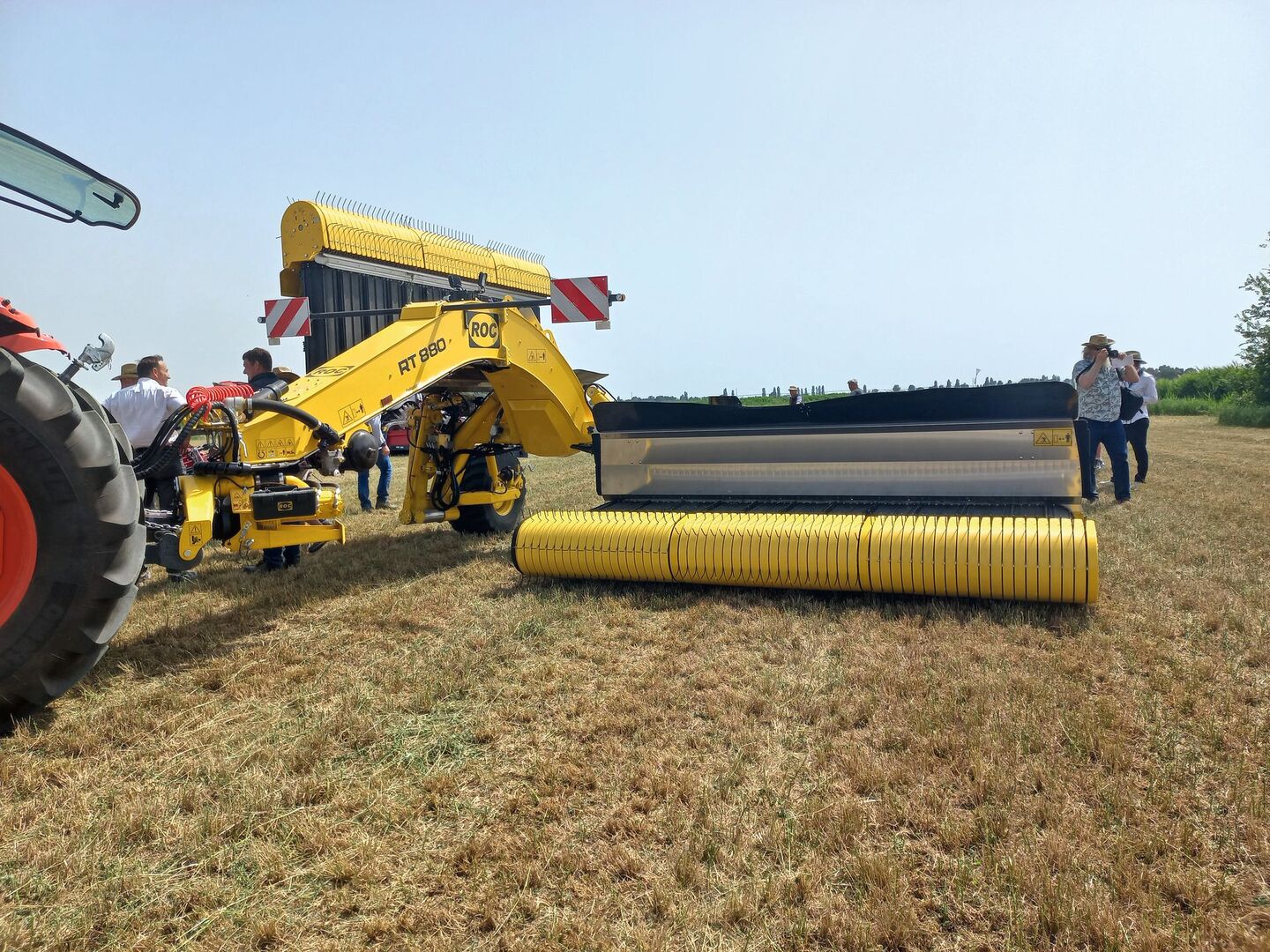 ROC ist als Bandschwader-Pionier in 40 Ländern auf dem Feld. Unter anderem mit diesem Band-schwader mit 12 m Arbeitsbreite für effizientes Schwaden mit wenig Bröckelverlust.